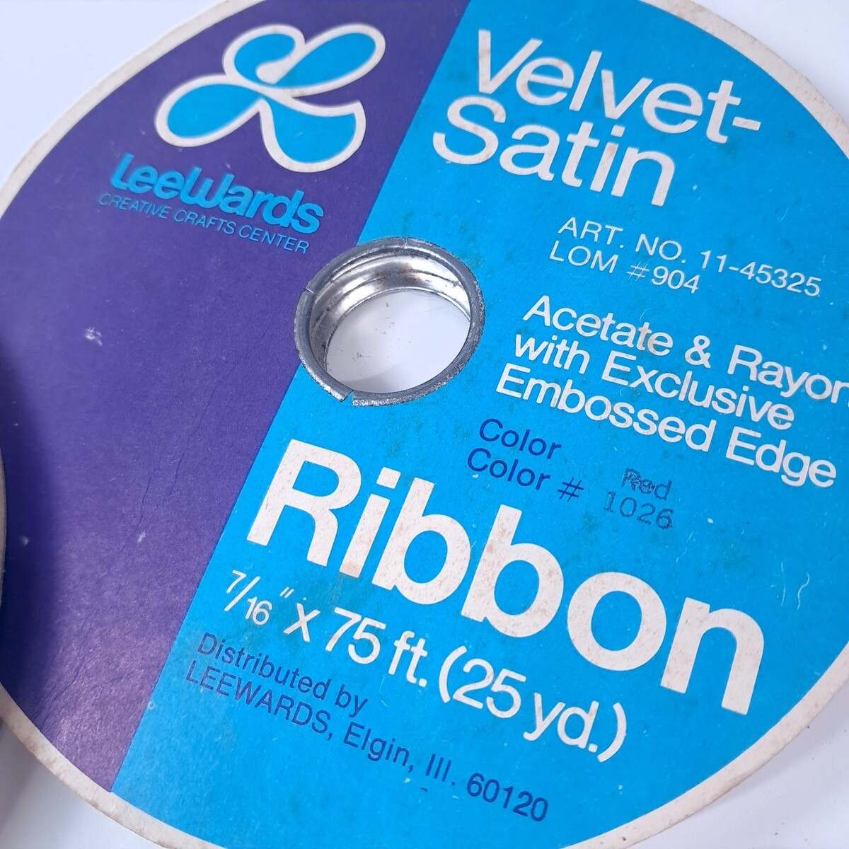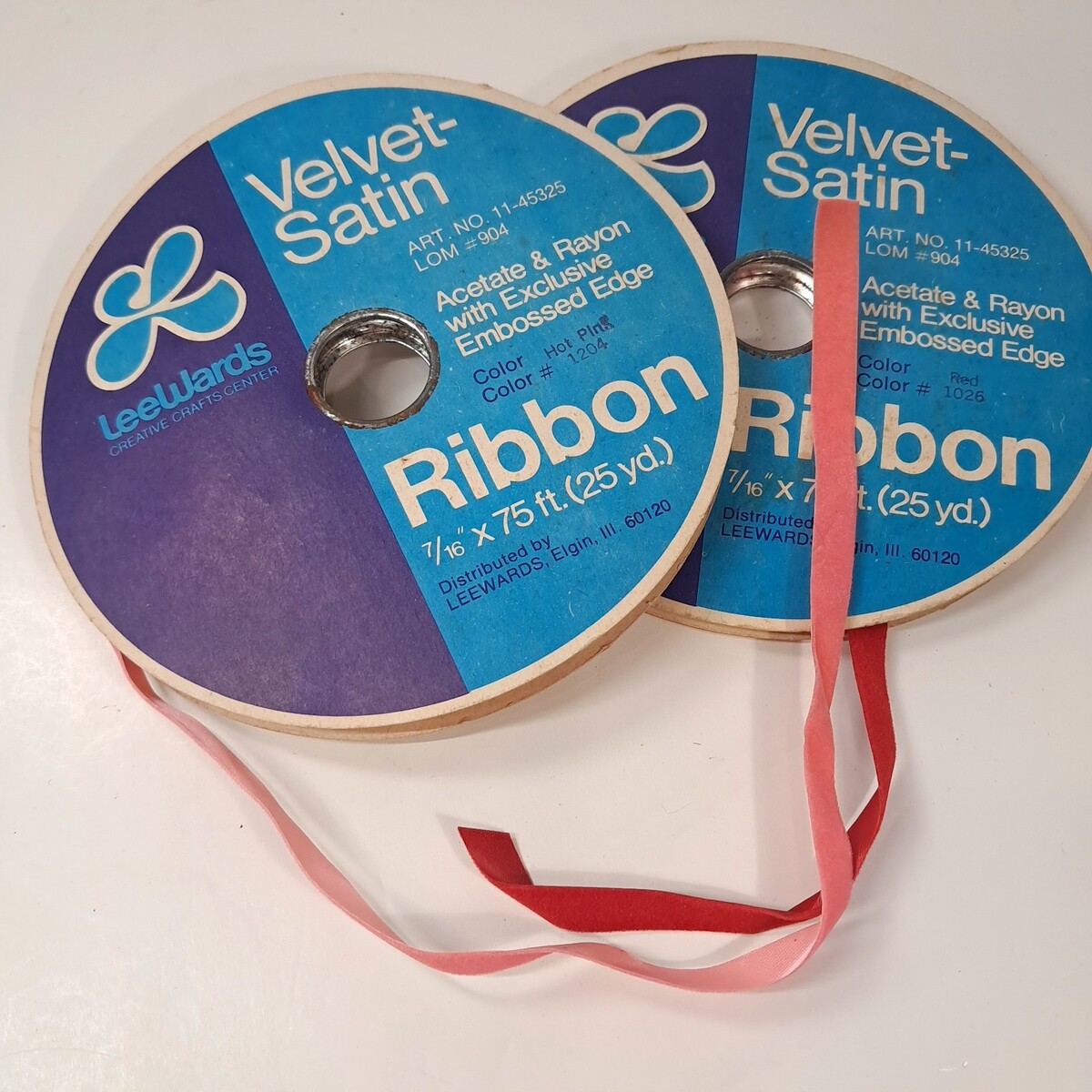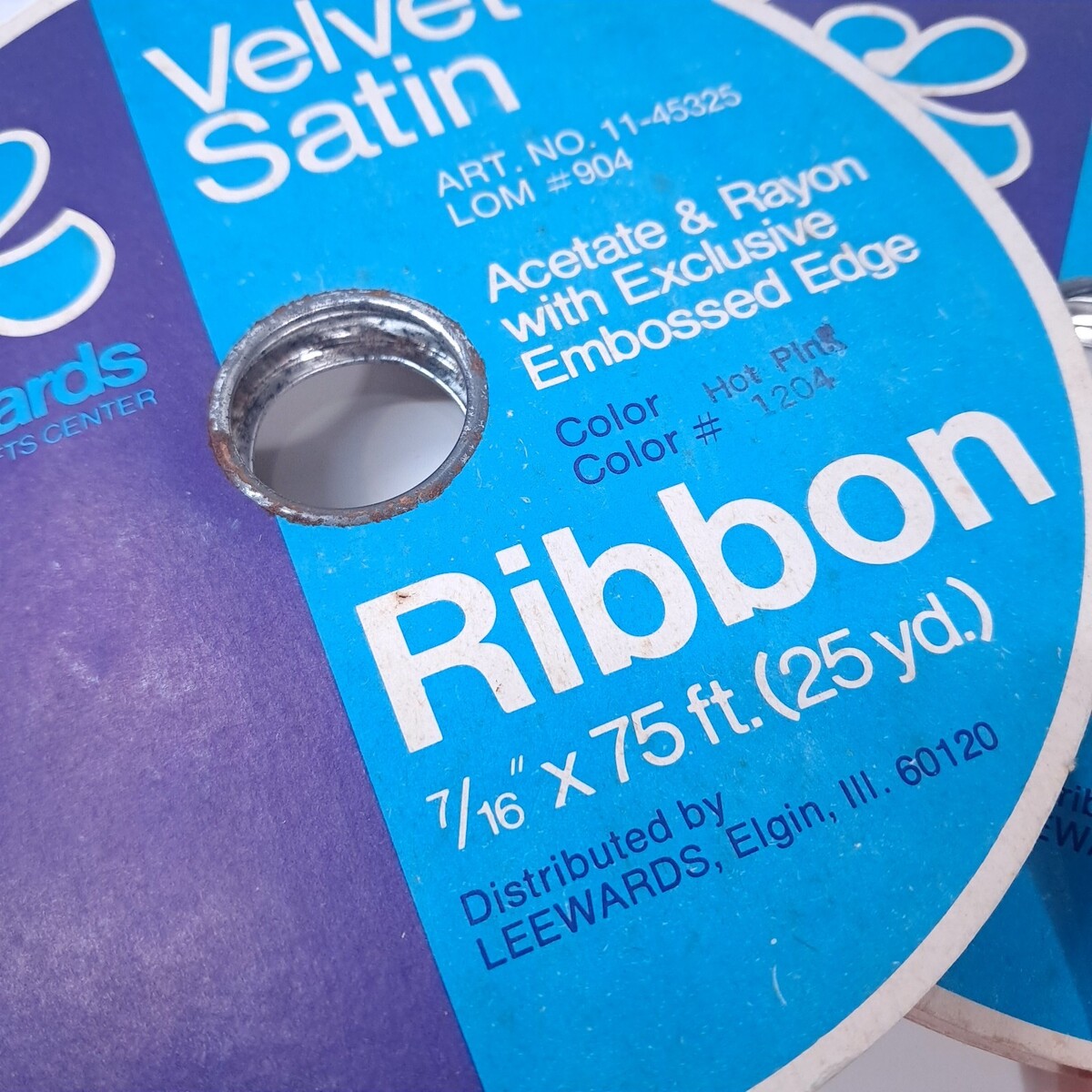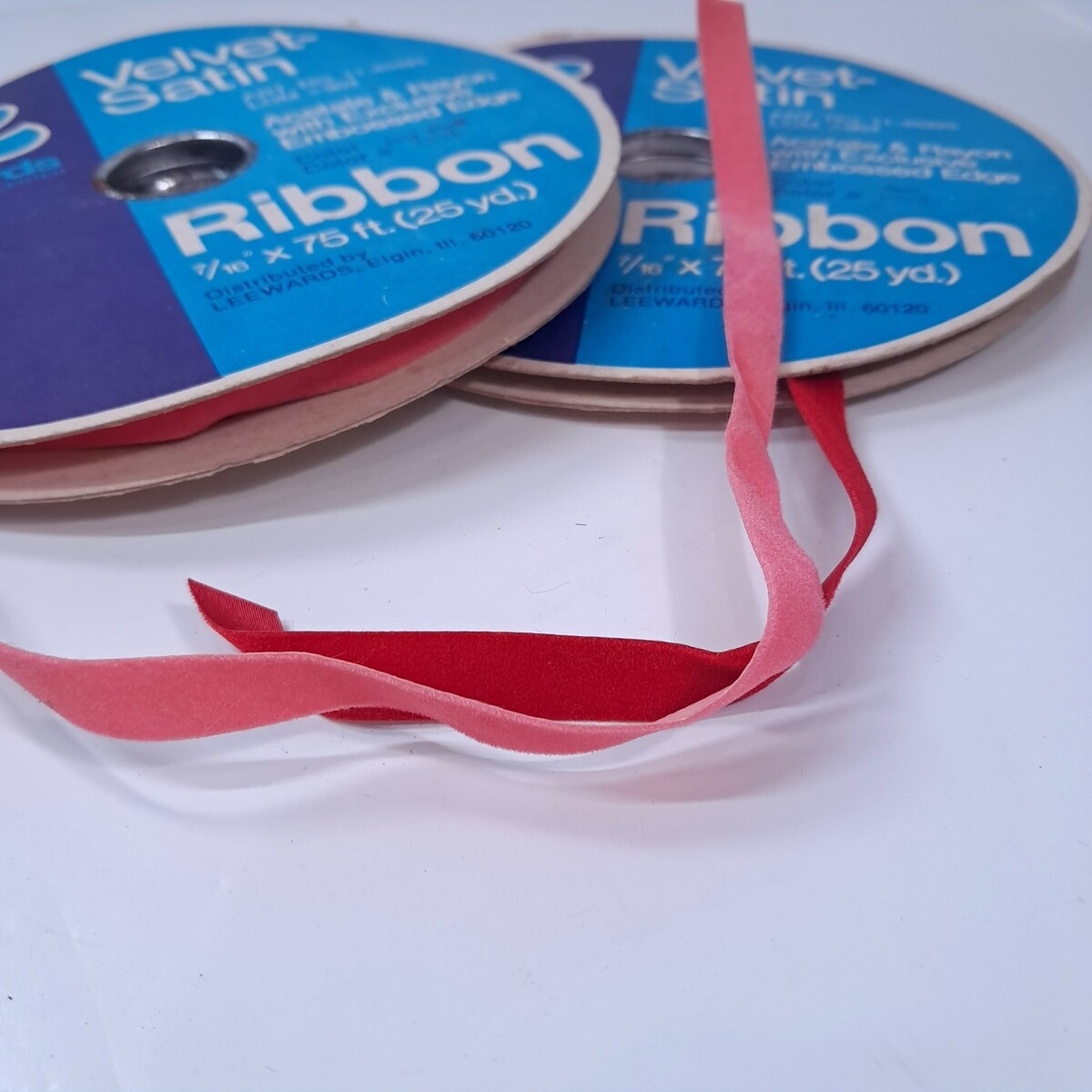 - Leewards Velvet Satin ribbon hot pink & red acetate rayon 7/16" Lee ward Vintage