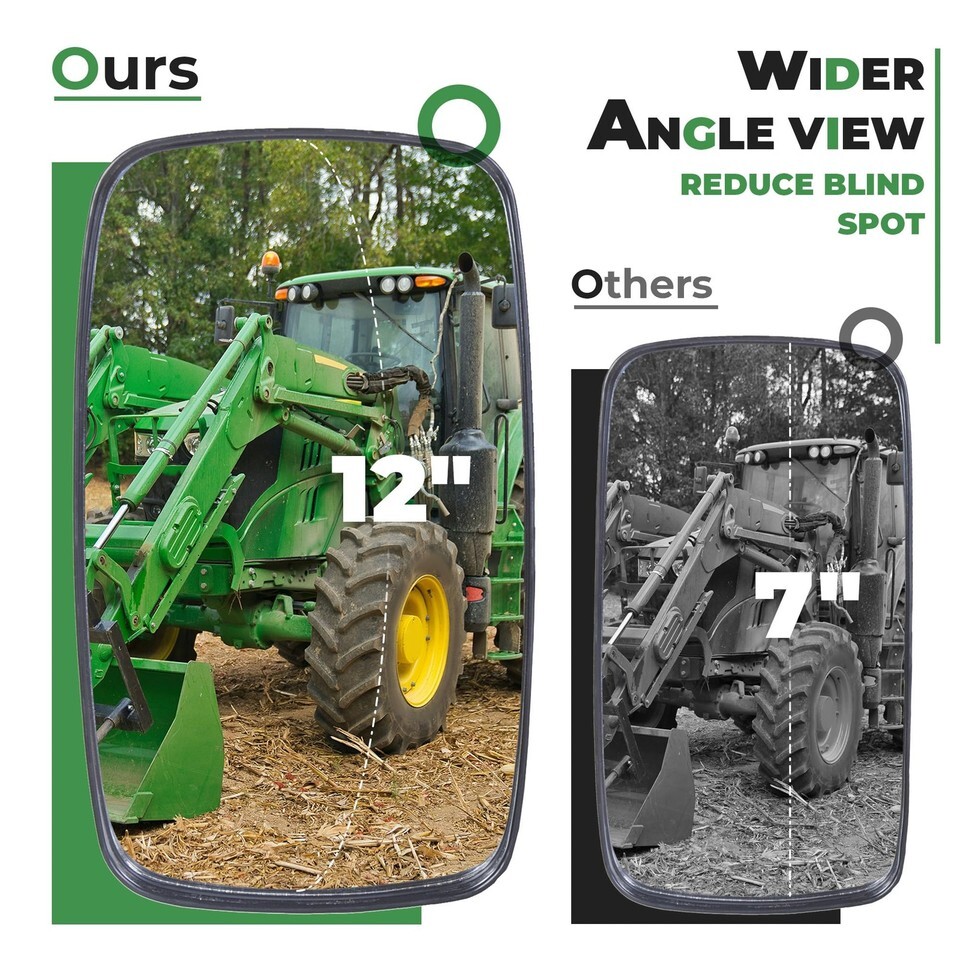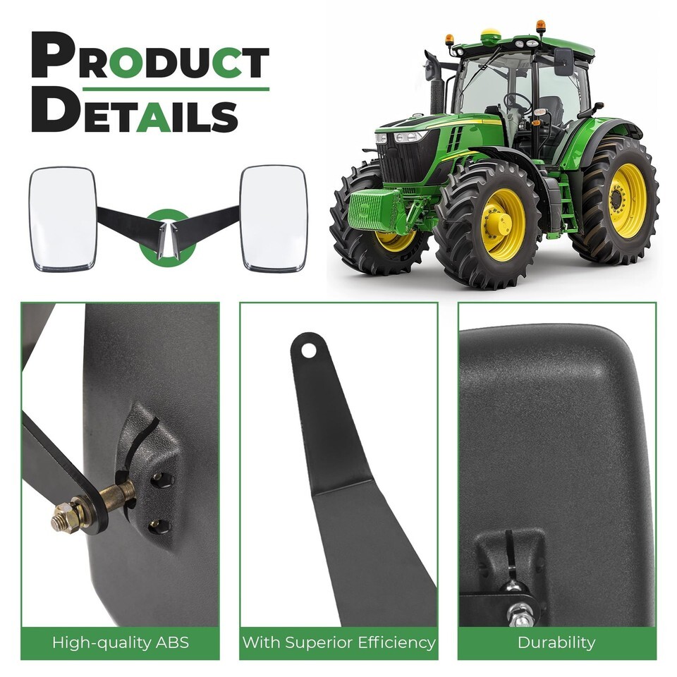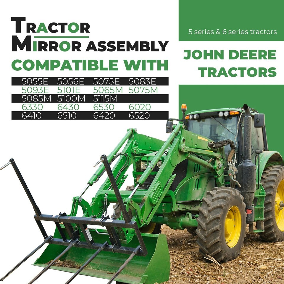 Fitment:This pair of tractor mirrors compatible with following cab equipped John Deere tractors: 5055E, 5065E, 5075E, 5083E, 5093E, 5101E, 5065M, 5075M, 5085M, 5100M, 5115M, 6330, 6430, 6530, 6020, 6410, 6510, 6420, 6520