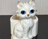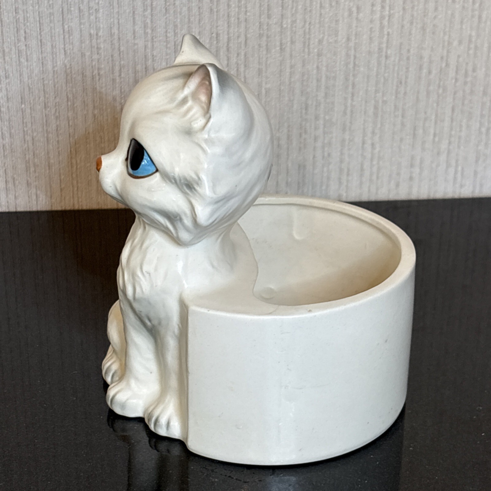 Vintage Lefton White Cat Blue Eyes Planter Figurine Mid Century
