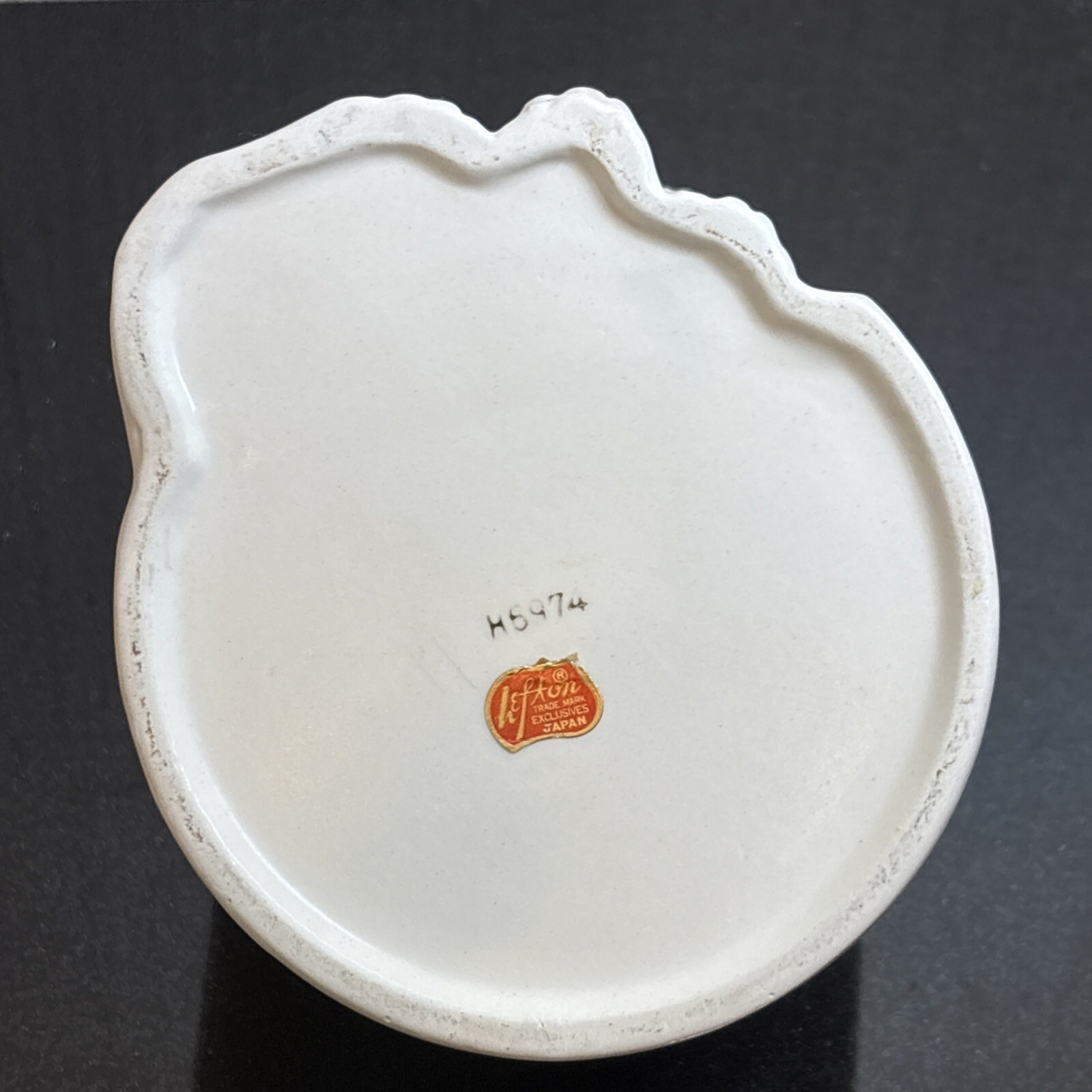 Original Lefton foil label. No chips, crazing, slight sign of use as a vase with water marks. Should come out, hardly noticeable