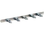 17" spring grip organizer bar, the grips slide on bar to desired position or maximum use, grips securely to store brooms, tools, rakes, Shovels much more, made of zinc plated steel guaranteed to never lose tension, level organizer screw into wall, to insert or remove an item press the surface marked push, dimensions: 0.19" L x 0.17" W x 0.22"H, Carded.