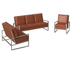 Add a touch of sophistication to your living room with our Jefferson 3-Piece Leather Sofa Set. The plush leather design is both luxurious and durable, while the brushed stainless steel base adds a modern edge. Complete the look with the included accent chair and loveseat for a cohesive and stylish seating arrangement. Elevate your home decor with the Jefferson set!