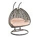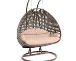 - LeisureMod Beige 2-Person Wicker Egg Chair - Outdoor/Indoor Hanging Lounge Swing