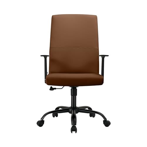 - LeisureMod Dark Brown Faux Leather Office Chair, Mid-Century Modern Aluminum Fra