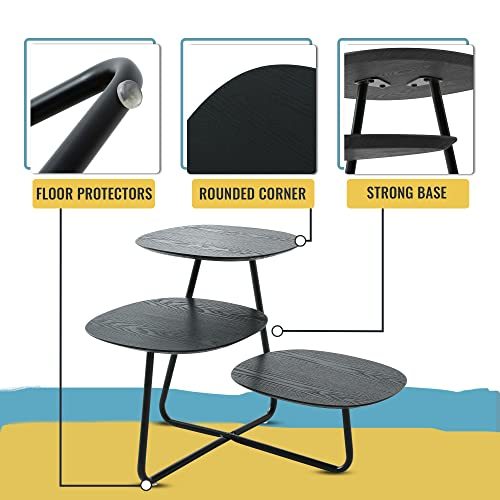This modern accent end table is perfect for any office and living room, or any other living space. It comes with a three-shelf design offering plenty of storage options. The 3 shelves of the modern end table are crafted from a durable laminate board that provides plenty of space for decor. This modern end table features a modern design steel frame with powder coated finish, providing a durable and sturdy that will look great for years to come.