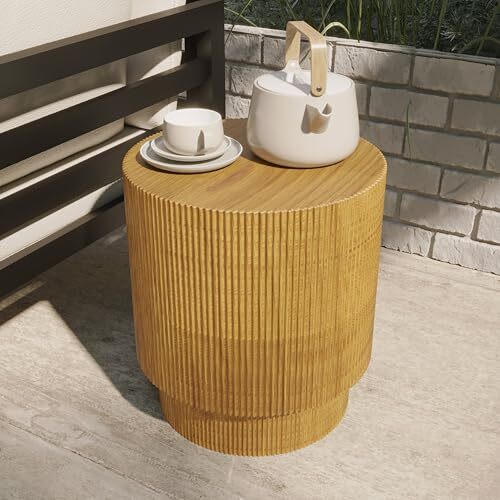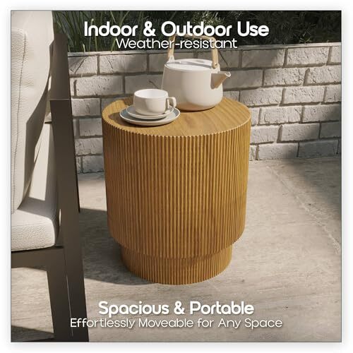 - LeisureMod Modern Side Table Round Fiberstone Top Accent End Table for Home, Out