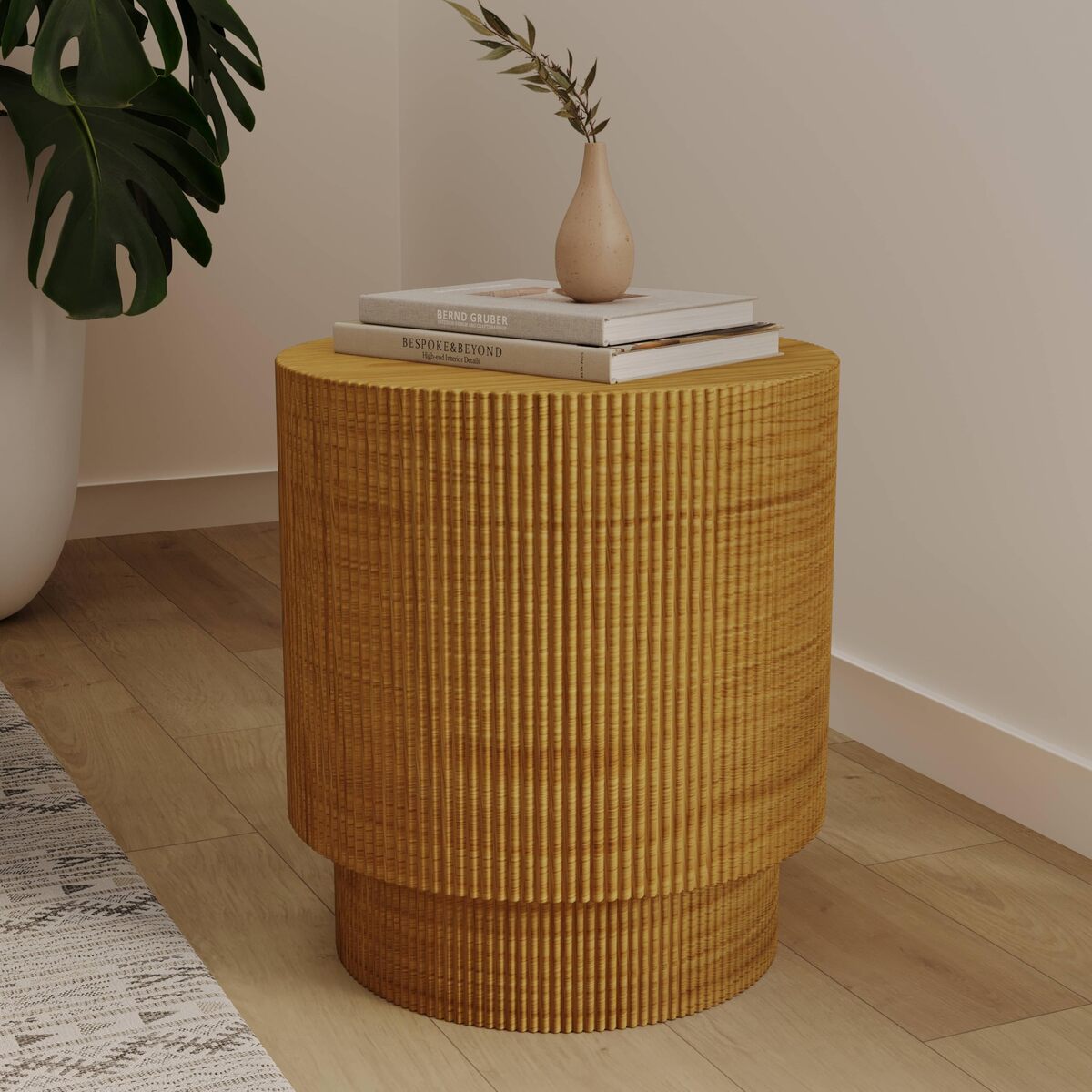 Bullet point: [SLEEK AND STYLISH DESIGN] The round side table combines modern sophistication with clean lines and smooth curves. Its minimalist design fits perfectly with contemporary decor. The round top offers a soft contrast to the sharp angles often seen in modern furniture, creating visual interest and elegance in any room.