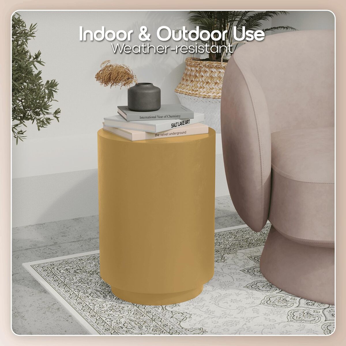 The side table features a minimalist design with smooth, clean lines, and a cylindrical shape. Its slimmer, tapered base enhances the overall sleek appearance, giving it a modern and sophisticated look. The table’s well-proportioned structure creates a stable foundation that complements contemporary and minimalist interiors. The end table is constructed from fiberstone, a material known for its durability, strength, and longevity. Its solid form provides reliable support for everyday use, easily holding items such as lamps, books, or decorative accents. Fiberstone is also less prone to wear, ensuring that the table maintains its structure and appearance over time. The accent table is available in two finish options: natural travertine and painted. The natural travertine finish features an organic, textured surface that highlights the natural patterns and variations of the stone. The painted finish offers a smooth, refined surface with a clean, modern look. Each finish provides a distinct aesthetic, allowing you to choose based on your preference for texture or sleekness. The side table is designed for both indoor and outdoor use, suitable for environments such as living rooms, patios, and gardens. Its weather- and UV-resistant construction protects it from sunlight, rain, and temperature changes, allowing it to function reliably in different settings. Measuring 18 inches in height and 14 inches in width and depth, the table is designed with compact dimensions that offer versatility in placement. Its size allows for convenient use as an end table, plant stand, or decorative piece in smaller spaces. The durable fiberstone surface is easy to clean and maintain. A simple wipe with a damp or dry cloth keeps the table looking pristine, allowing you to enjoy its beauty with minimal upkeep. No assembly is required—this corner table comes fully assembled and ready to use. Simply place it in your desired location and start enjoying its functionality and style right away, saving you time and effort.