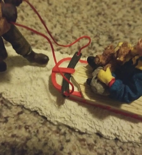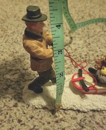 Figurine is in very good condition, no chips or cracks. The red ties to the sled are just sitting on the holes, see pics for measurements and condition.