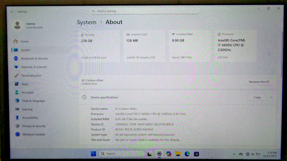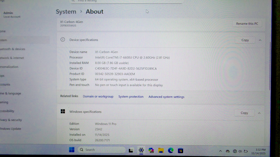 - Lenovo ThinkPad X1 Carbon 4th Gen | Core i7 | 8GB RAM | 256GB NVMe | Win 11 Pro