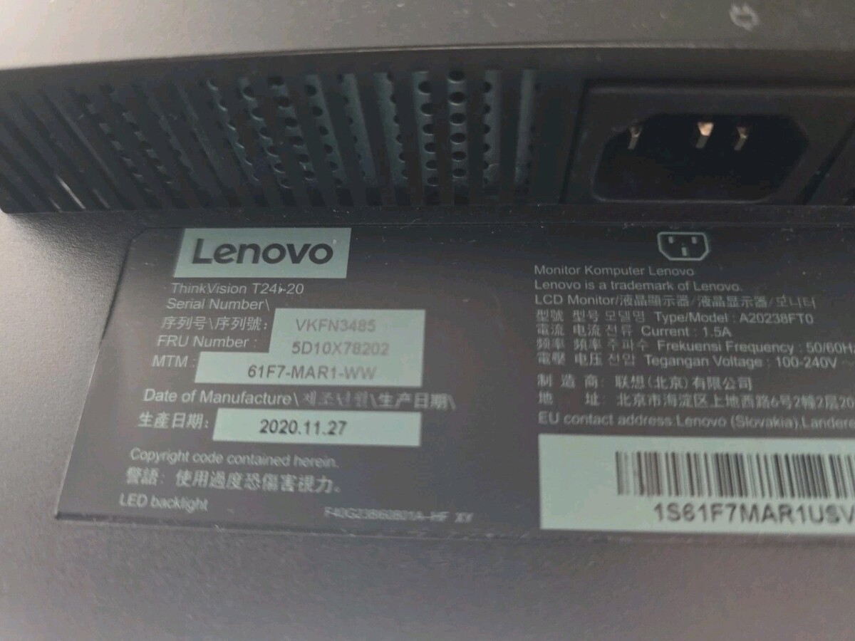 - Lenovo ThinkVision T24i-20 23.8" 1920x1080 IPS LED Monitor