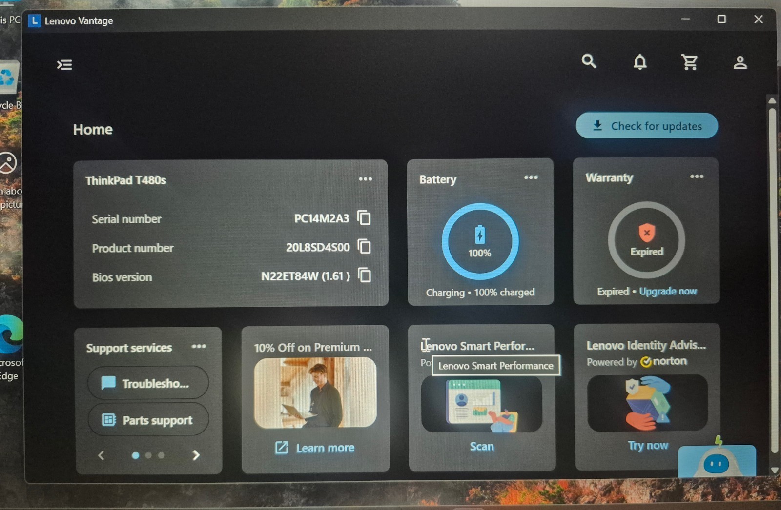 The Lenovo Vantage App is installed, was run and all Drivers, Firmware and Bios were updated