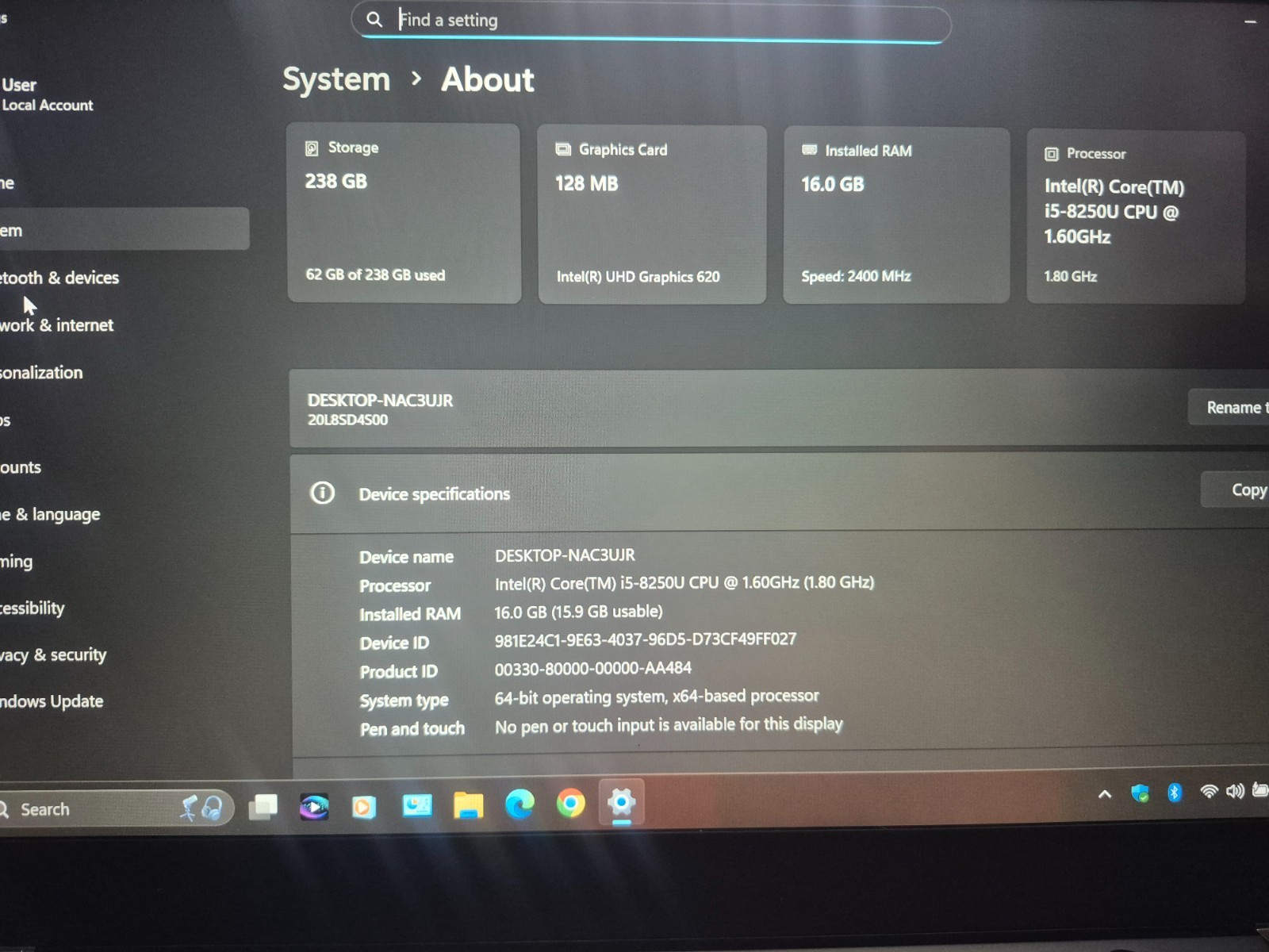 Intel Core i5 ~ 8250U @ 1.60GHz * 16GB Ram * 256GB NVMe