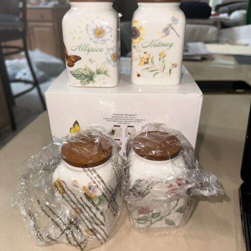 - LENOX AMERICAN BY DESIGN BUTTERFLY MEADOW 4pc BAKING SPICE JARS BEAUTIFUL NIB