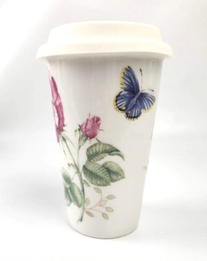 - Lenox Butterfly Meadow Travel Mug 10 oz Ceramic Floral Thermal Lid Coffee Tea