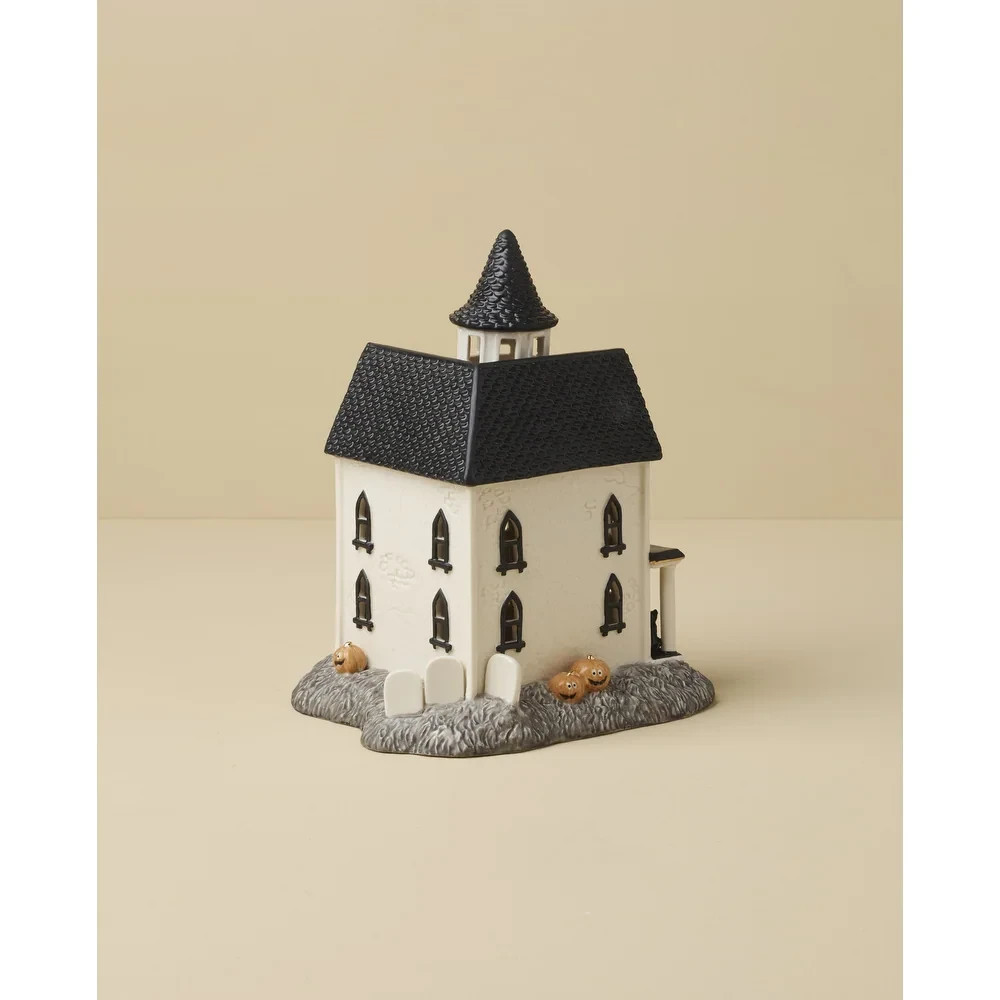 Set a spellbinding scene with this frightfully fun Vintage Halloween manor house. With grinning pumpkins, boarded-up windows, a black cat, a graveyard, and more, it's a scary-good addition to your own Halloween haunt. You're sure to love it?forevermore!