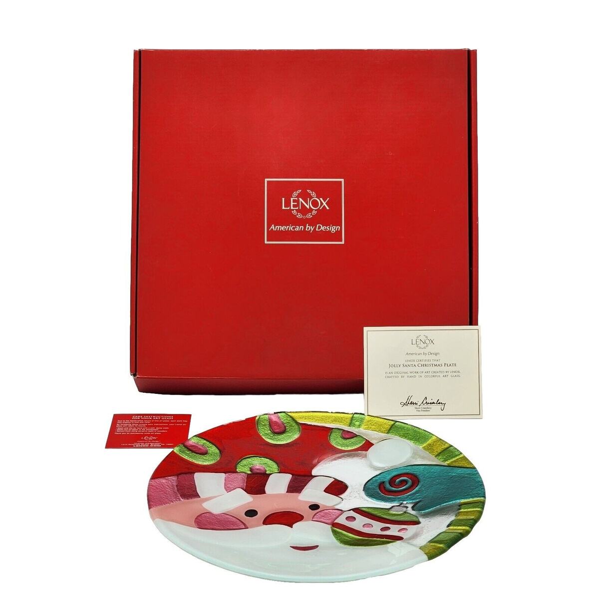 - Lenox Jolly Santa Christmas Plate Glass Fusion Hand Created VTG In Original Box
