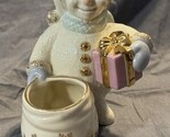 Add timeless charm to your holiday decor with this Lenox handcrafted snowman figurine, featuring exquisite detailing and elegant gold accents. The snowman carries a pink and gold present in one hand and a cream-colored bag adorned with metallic gold snowflakes in the other ? perfect for holding small treats or seasonal decor touches.