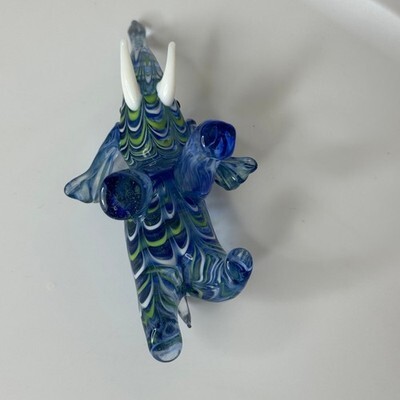 - Lenox Vintage Blue Handblown Glass Elephant Figurine Art Swirl Collectible