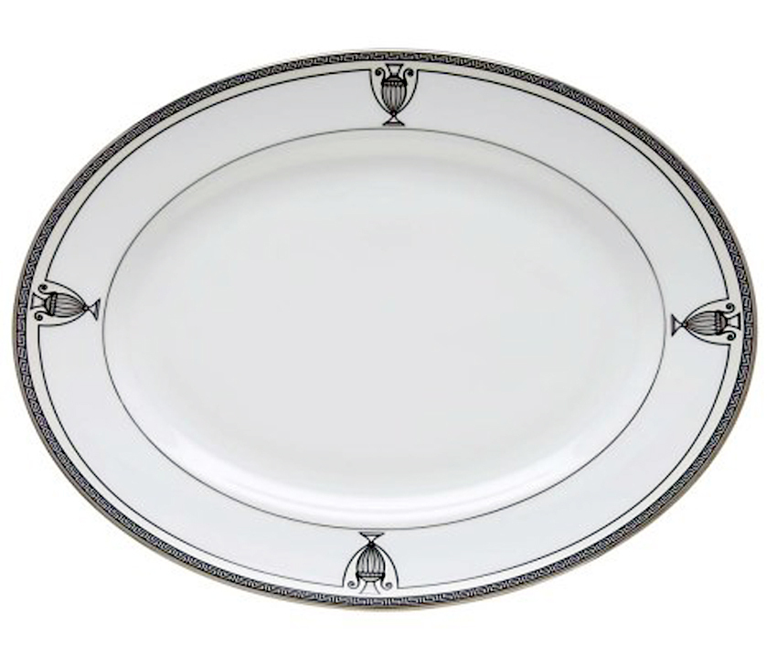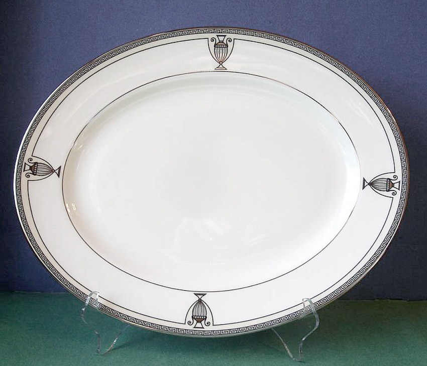 Greek key pattern, stylized urn motif, platinum banding |