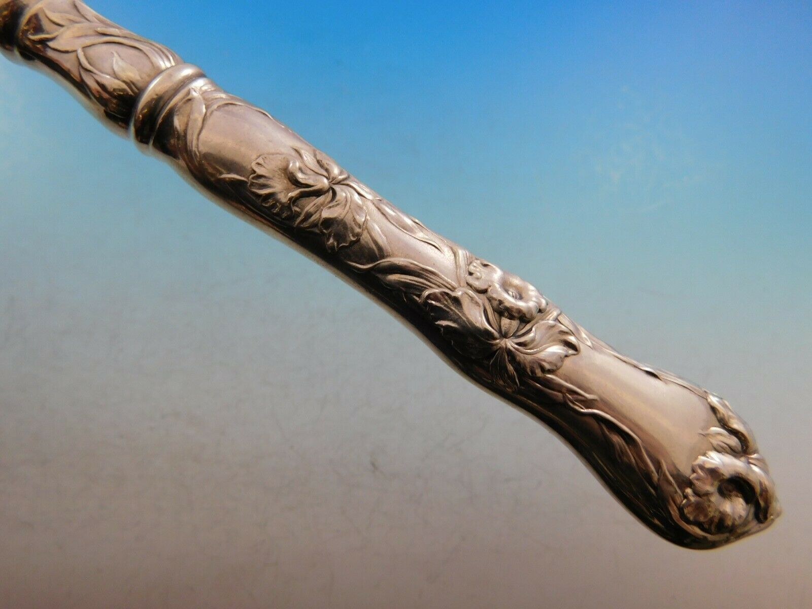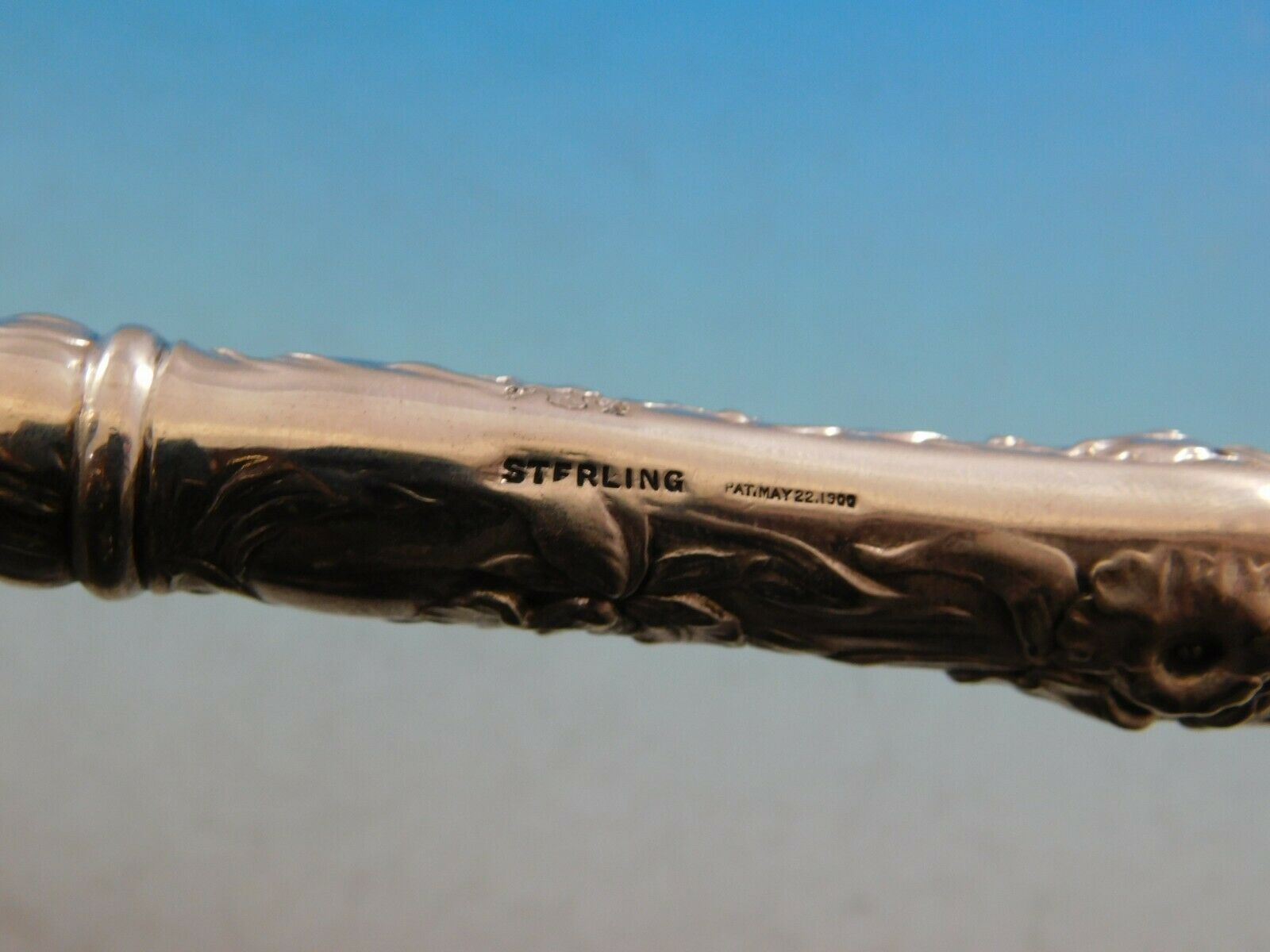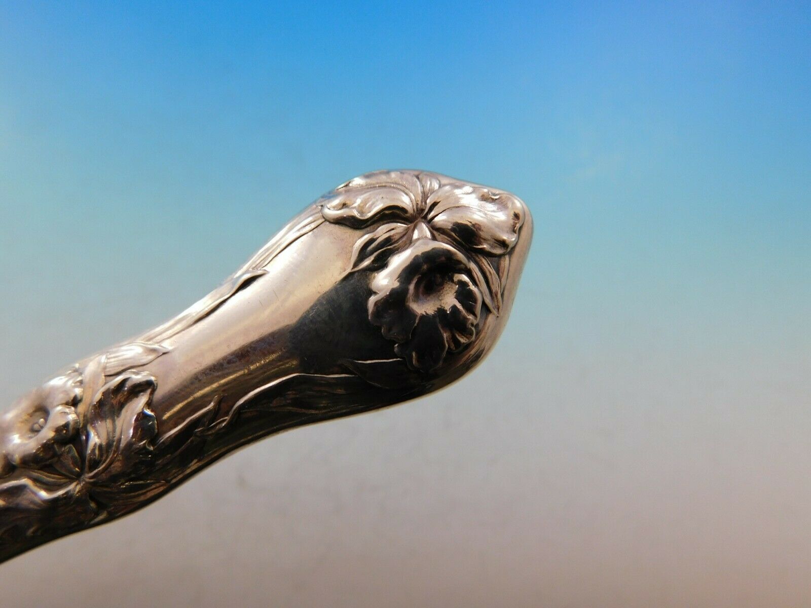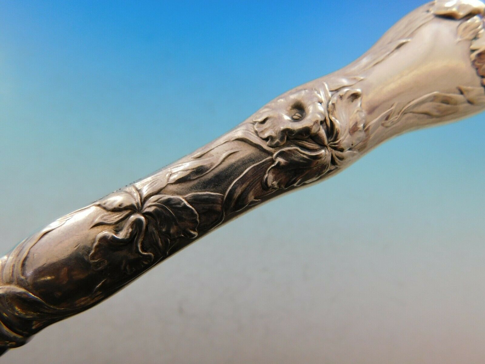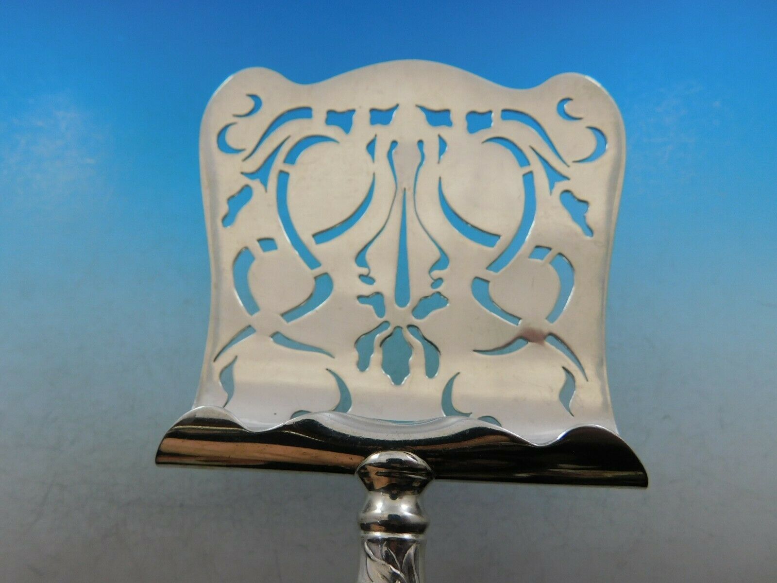 Extraordinary sterling silver Asparagus Server measuring 8 3/4" in the pattern Les Cinq Fleurs by Reed Barton. This beautiful floral (5 flowers), multi-motif Art Nouveau pattern was introduced in the year 1900. This piece features a stunning hooded pierced serving area. It is not monogrammed and is in excellent condition.