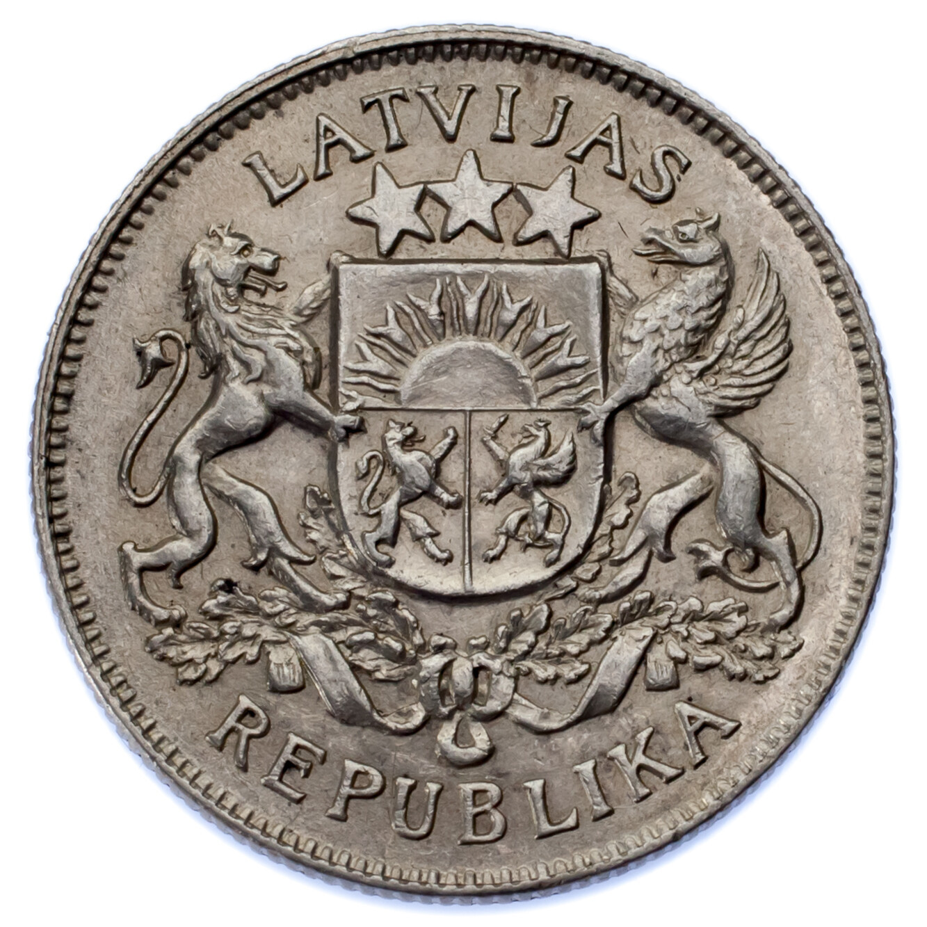 1926 Lettonie 2 Lati, presque non circule (AU), KM # 8, 0,835 argent (1 114 000)