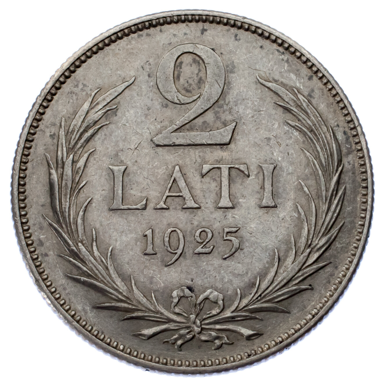 1925 Lettonie 2 Lati, Extra Fine (XF), KM # 8, 0,835 Silver (6 386 000)