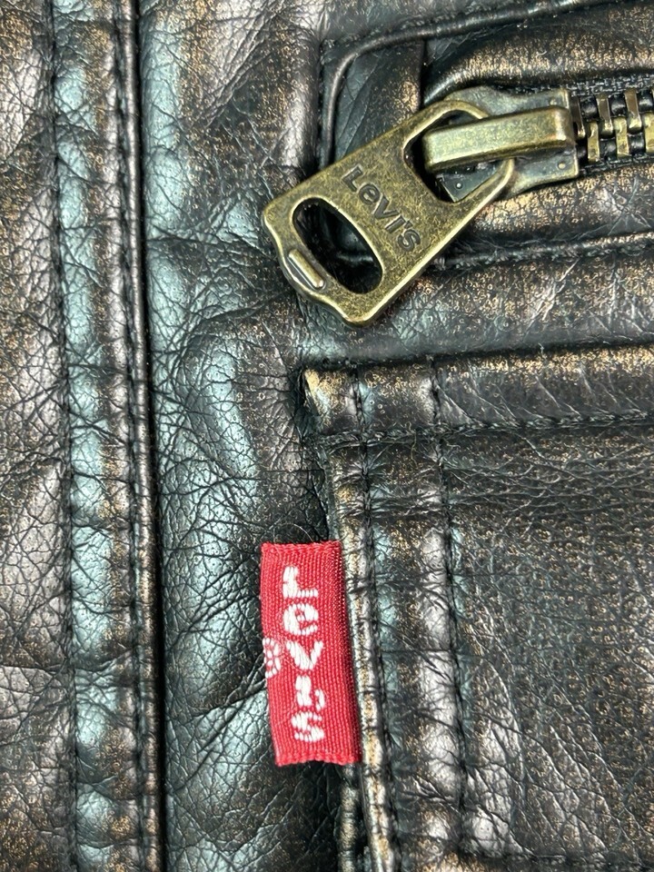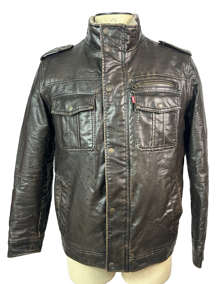 Up for sell is a Levi's Men's Faux Leather Sherpa Lined Trucker Style Jacket
