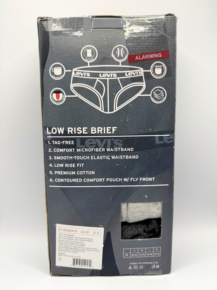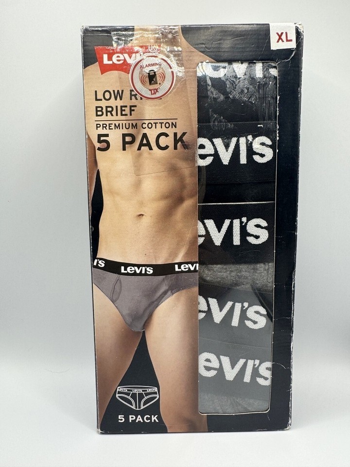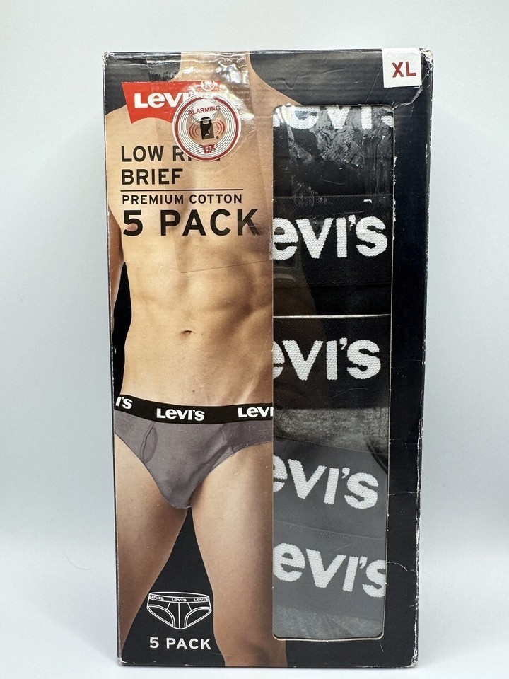 - Levi's Men's Low-Rise Briefs Premium Cotton 5-Pack, Size XL Black and Gray