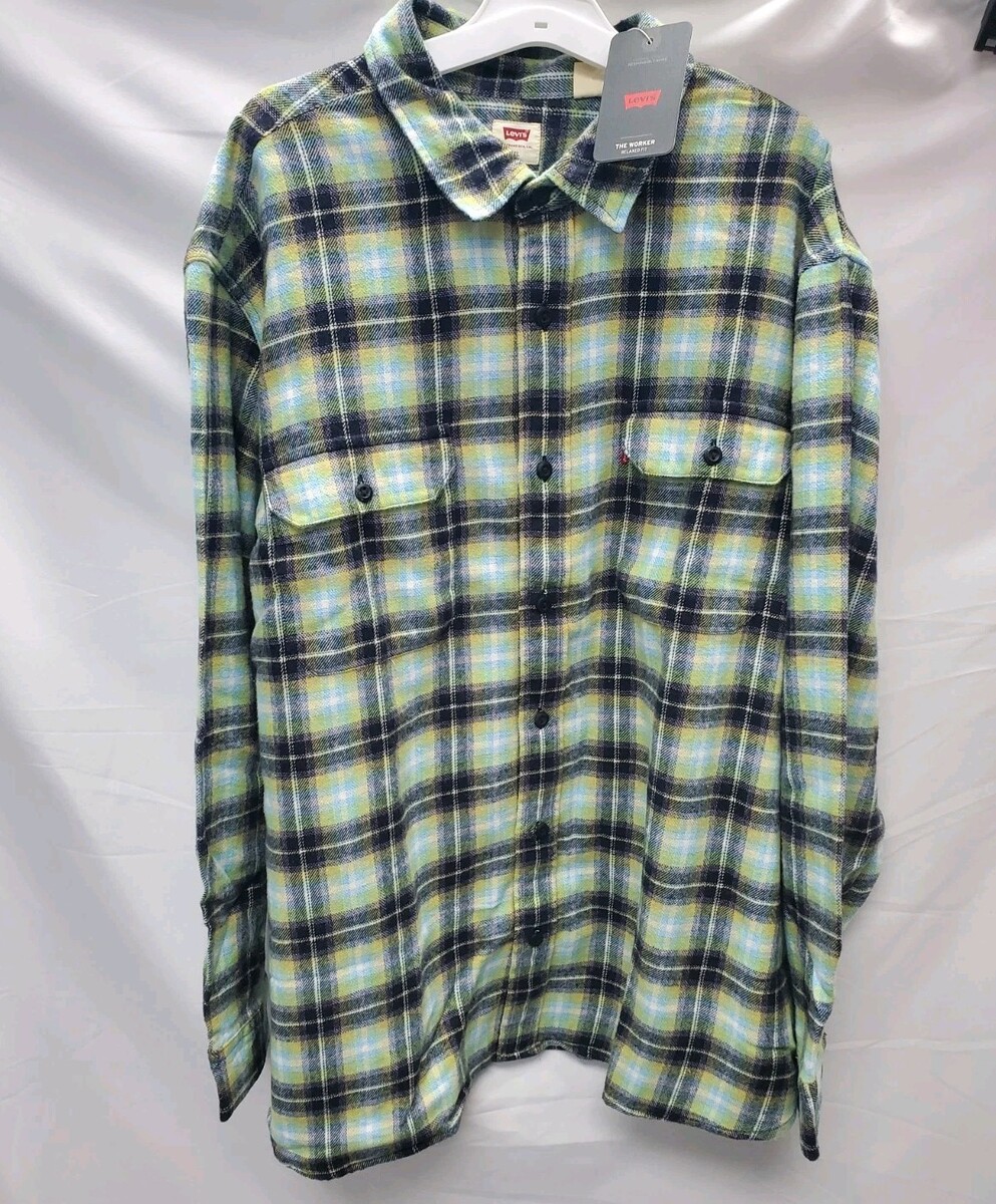 - Levi's Men's XL Worker Relaxed Plaid Long Sleeve Button-Down Shirt Warm Olive