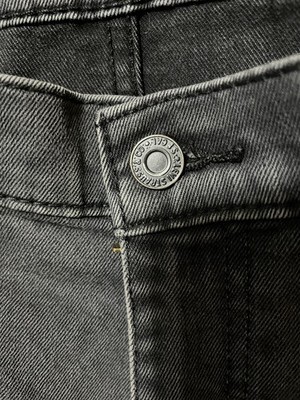 The product is a pair of Levis 502 Jeans in dark gray denim with a regular tapered leg fit. These men's jeans feature a zip and button closure, 5-pocket design, and are made from a cotton blend fabric. The dark wash gives them a stylish look, while the comfort and stretch features make them a versatile choice for any season. The Levi's brand, classic American theme, and modern design add a touch of iconic style to these versatile jeans.