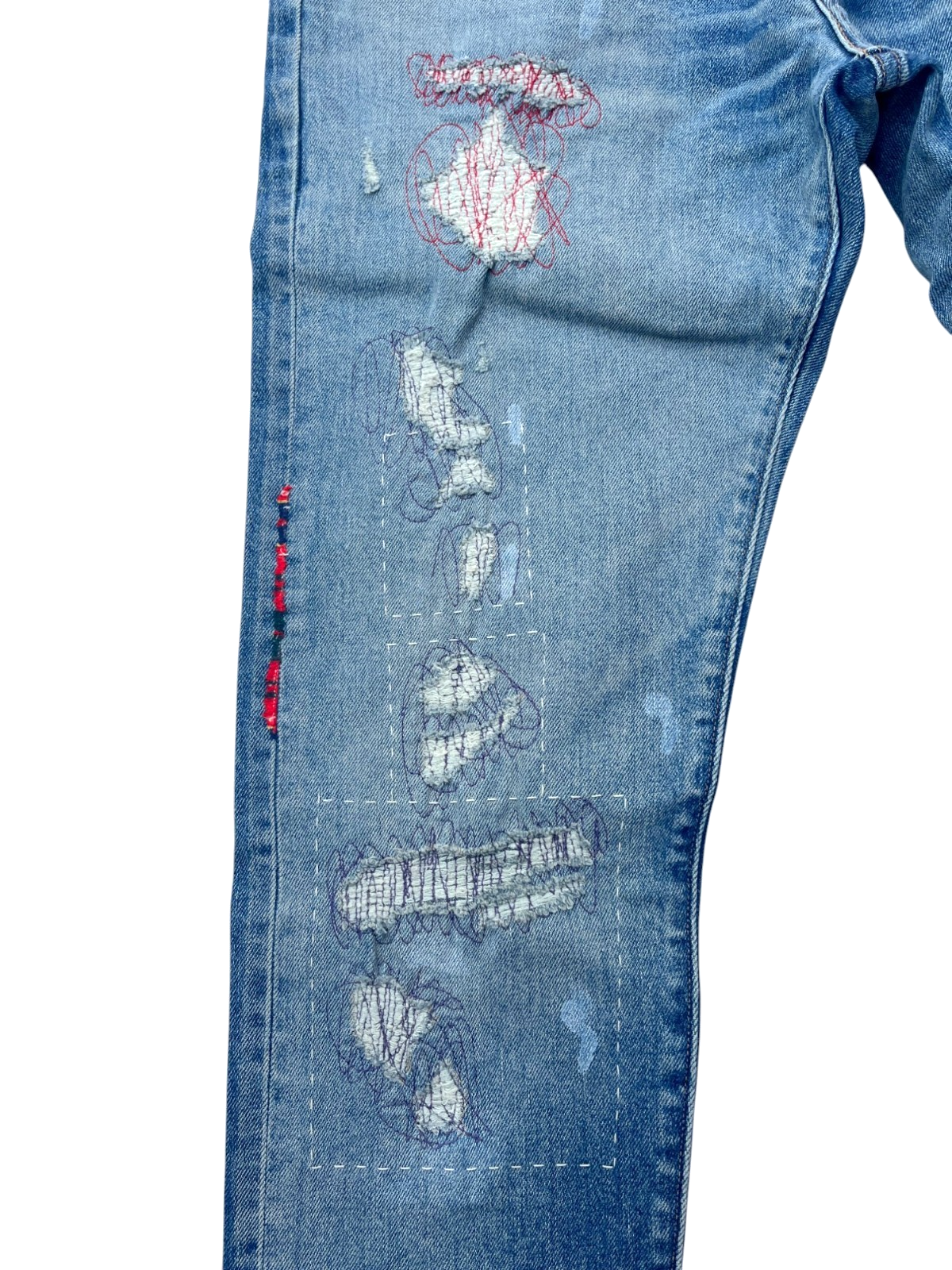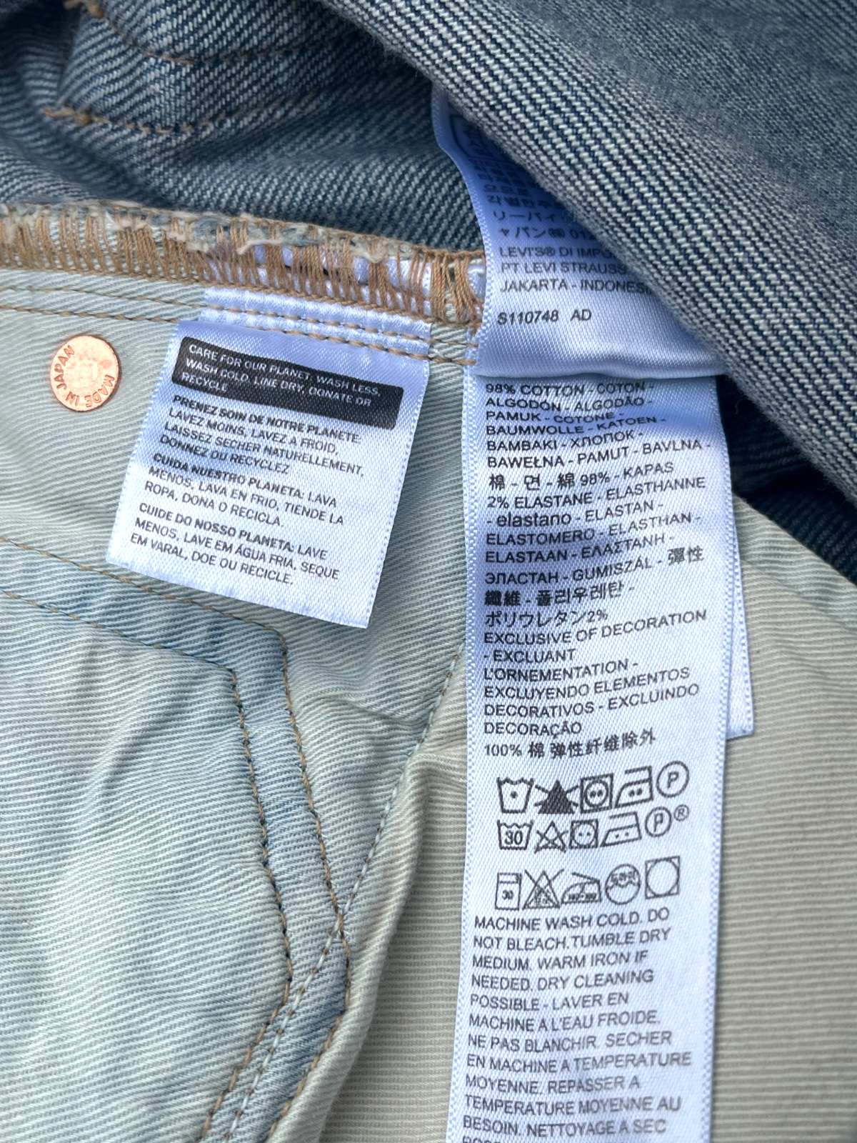 - Levis Blue Tab Mens 34*34 512 Slim Taper Stitch Repair Japan Selvedge Denim Jean