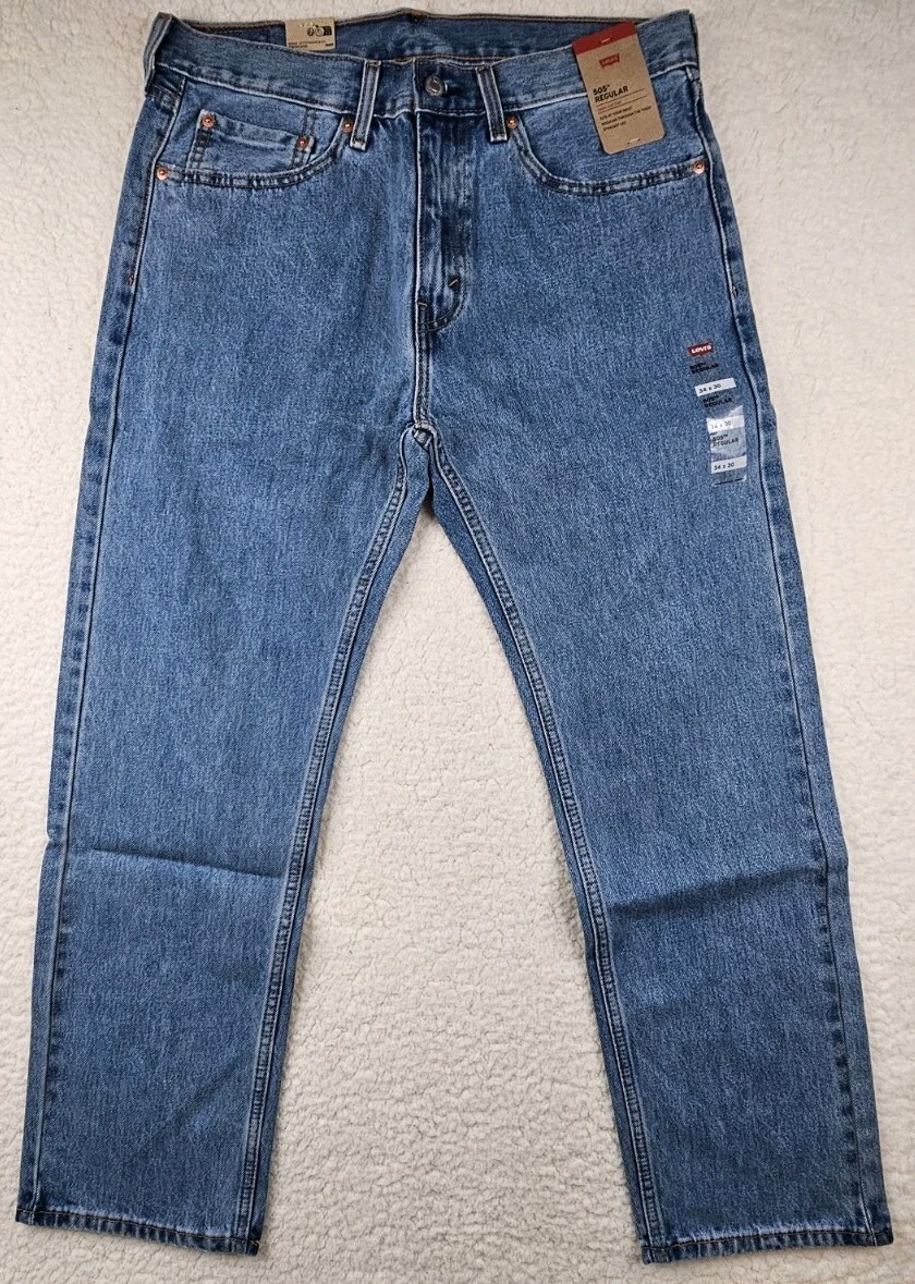 - Levis Mens Regular Straight Leg Jeans 505 Light Wash Stretch 5054834 34x30