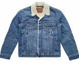 Levis Premium Red Tab Mens M Blue Wash Denim Jean Sherpa Lined Trucker Jacket