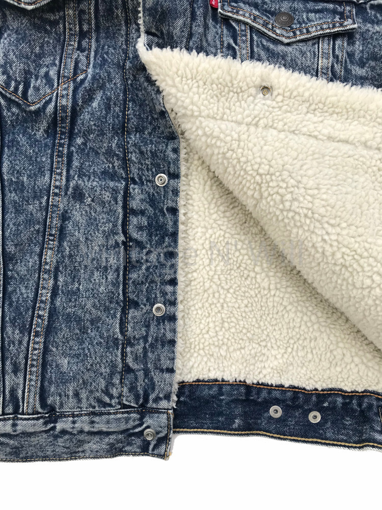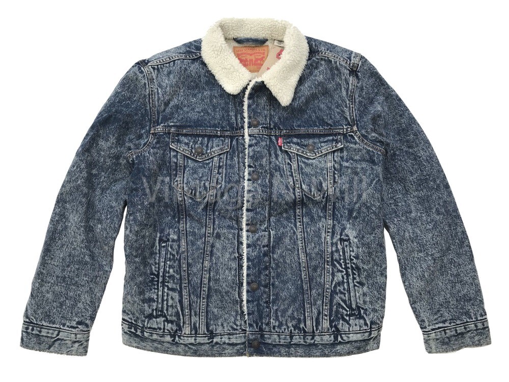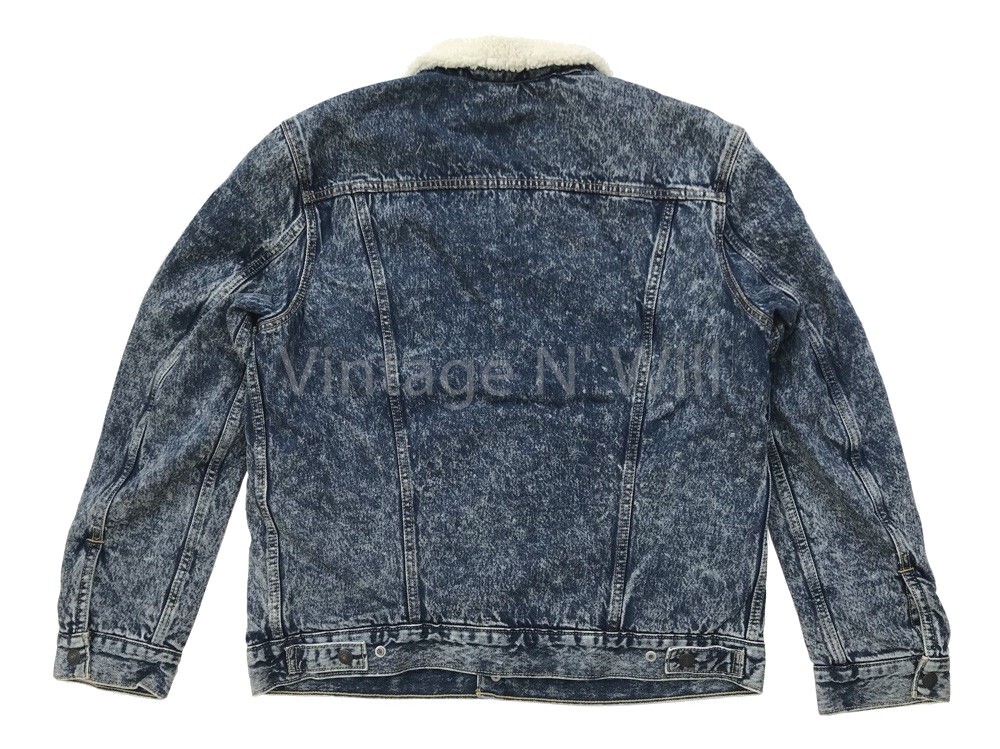 - Levis Red Tab Mens Blue Acid Wash Type III Denim Jean Sherpa Trucker Jacket