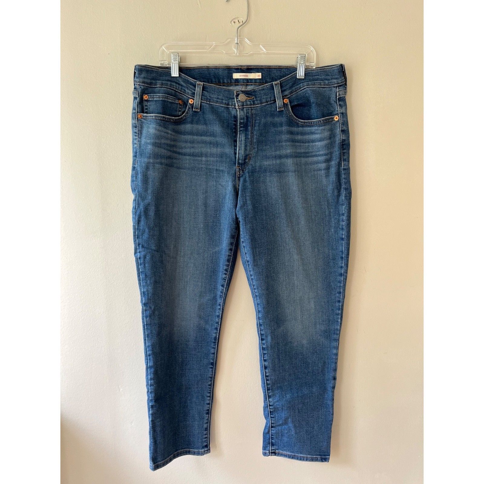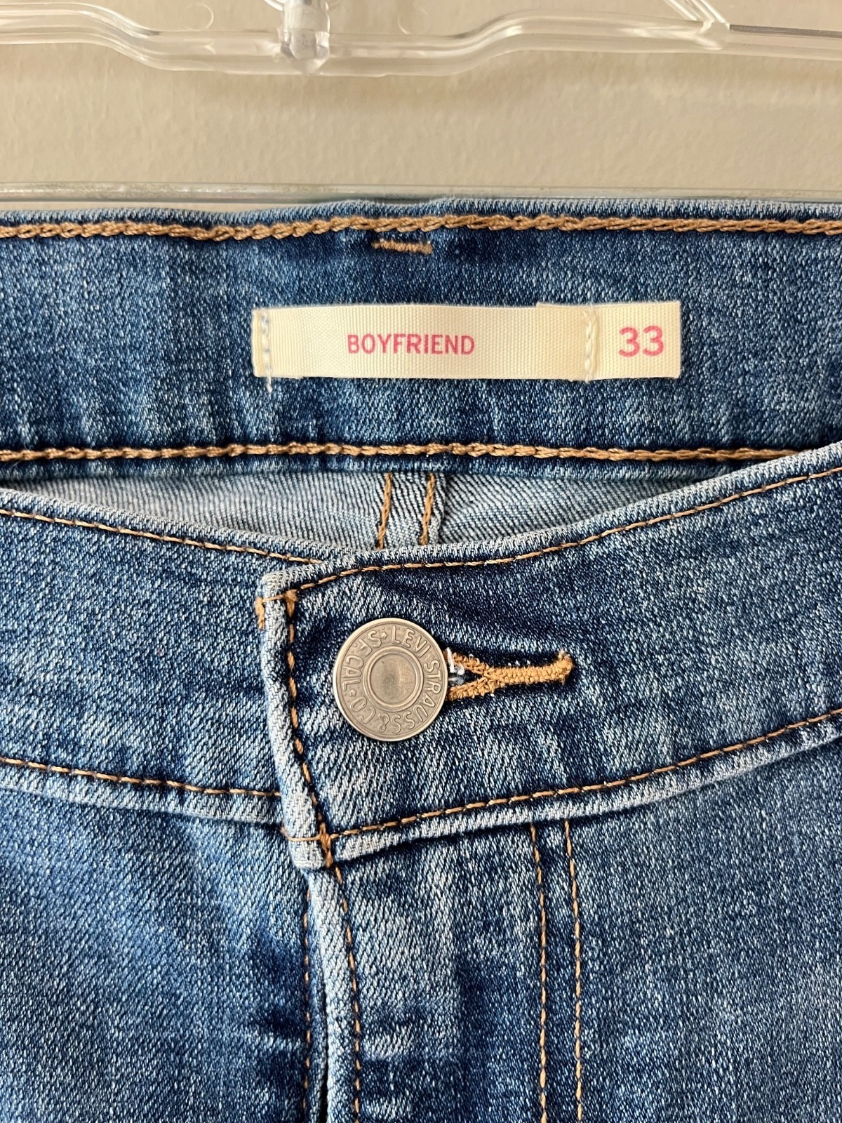 - Levis Sz 33 Boyfriend Jeans Denim Pants Mid Rise Relaxed Fit Stretch Tapered Leg