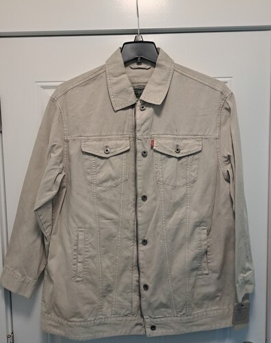 - Levis Womens Trucker Jacket Full Zip Button Chore Coat Size 1X Greige Gray New