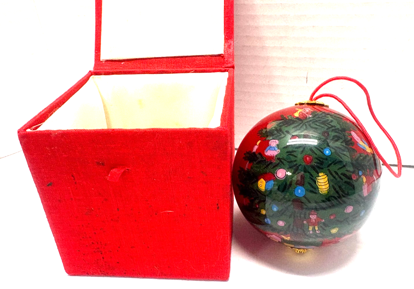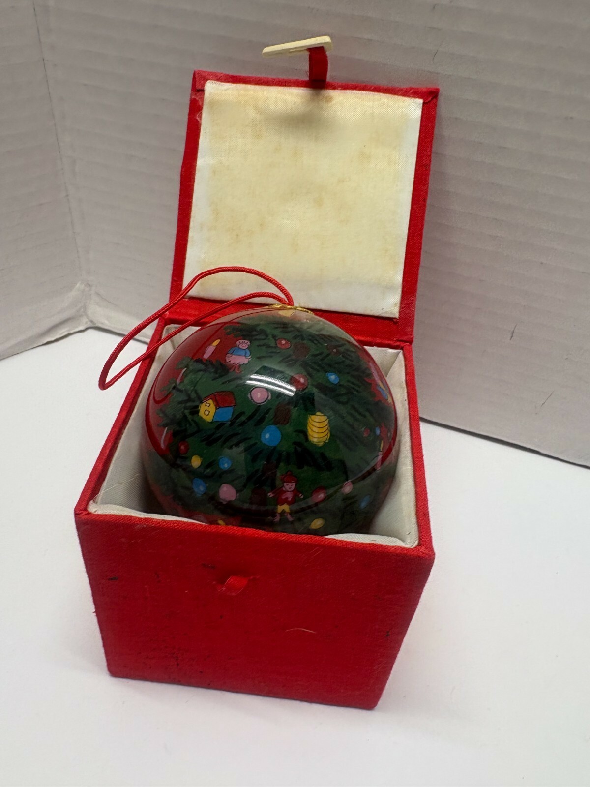 - Li Bien Painted Inside Christmas Tree 3" Round Glass Ornament Ball In Box
