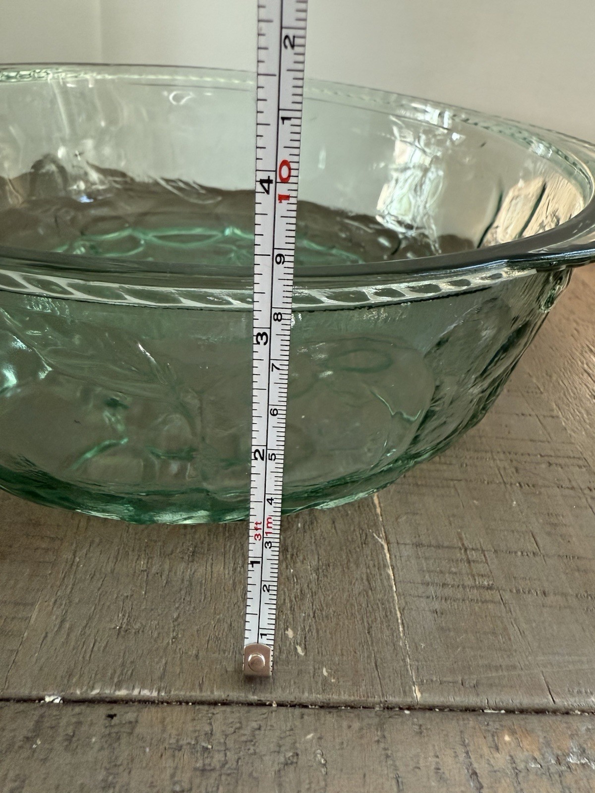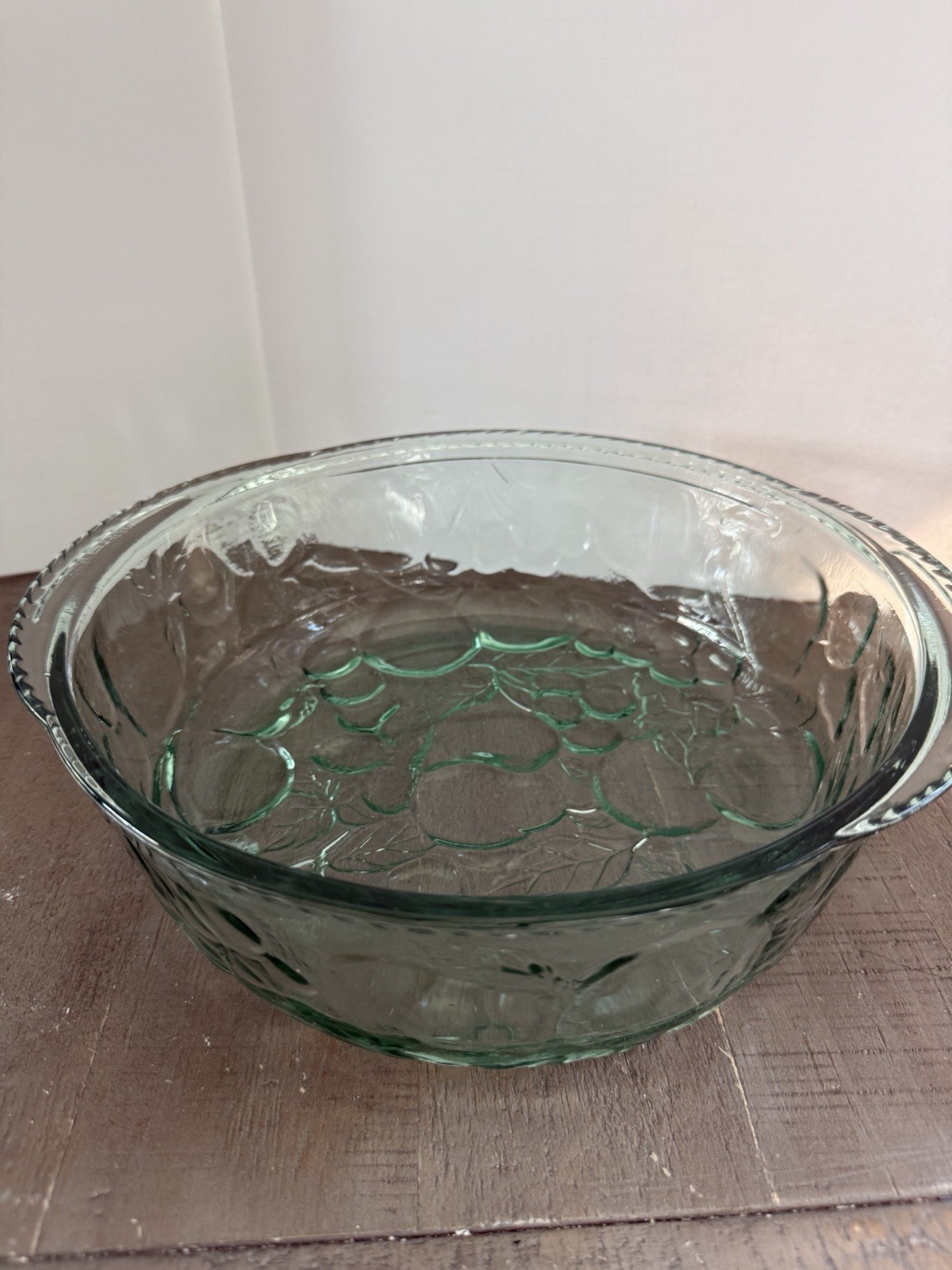 - Libbey Orchard Fruit Green Glass 3 qt Embossed Round Casserole Baking Dish Nolid