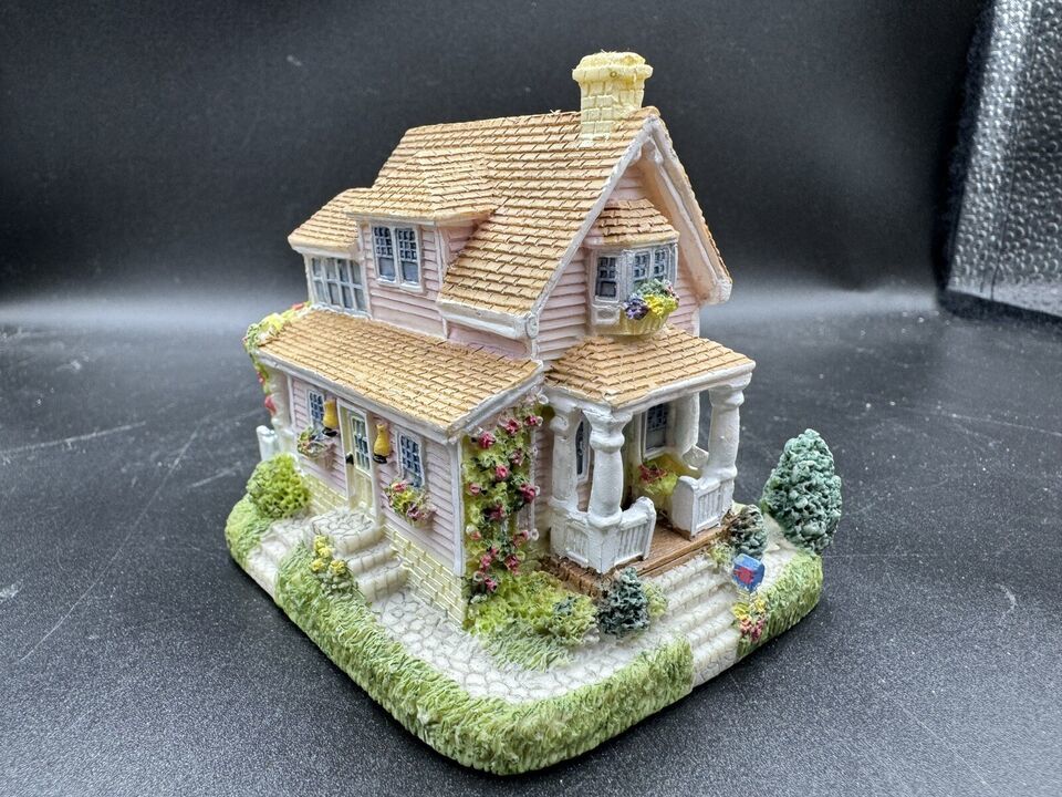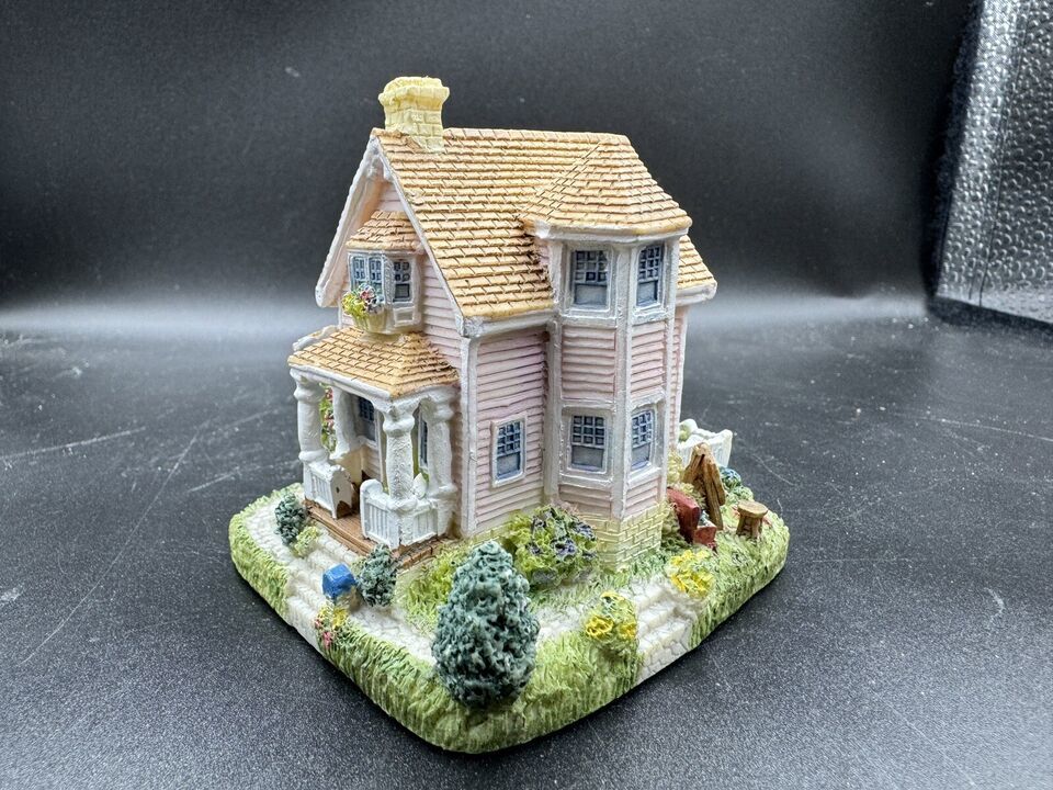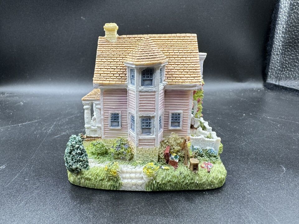 This charming miniature depicts the home of artist Anabelle Phillips and the Liberty Falls water tower. The colorful pattern is all-over and the shape is asymmetrical, making it a unique addition to any room. The ceramic and porcelain material used to create this piece, along with the intricate details of the villages, make it a perfect collectible for adults.