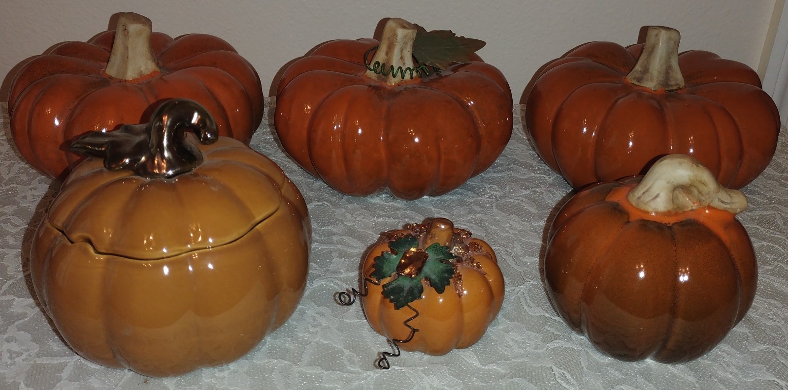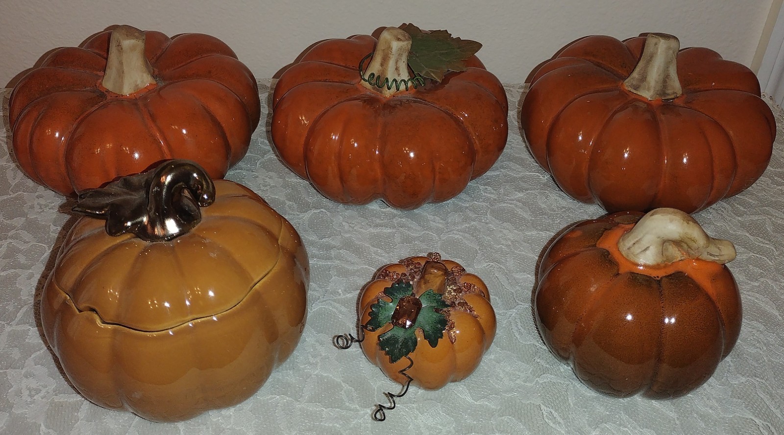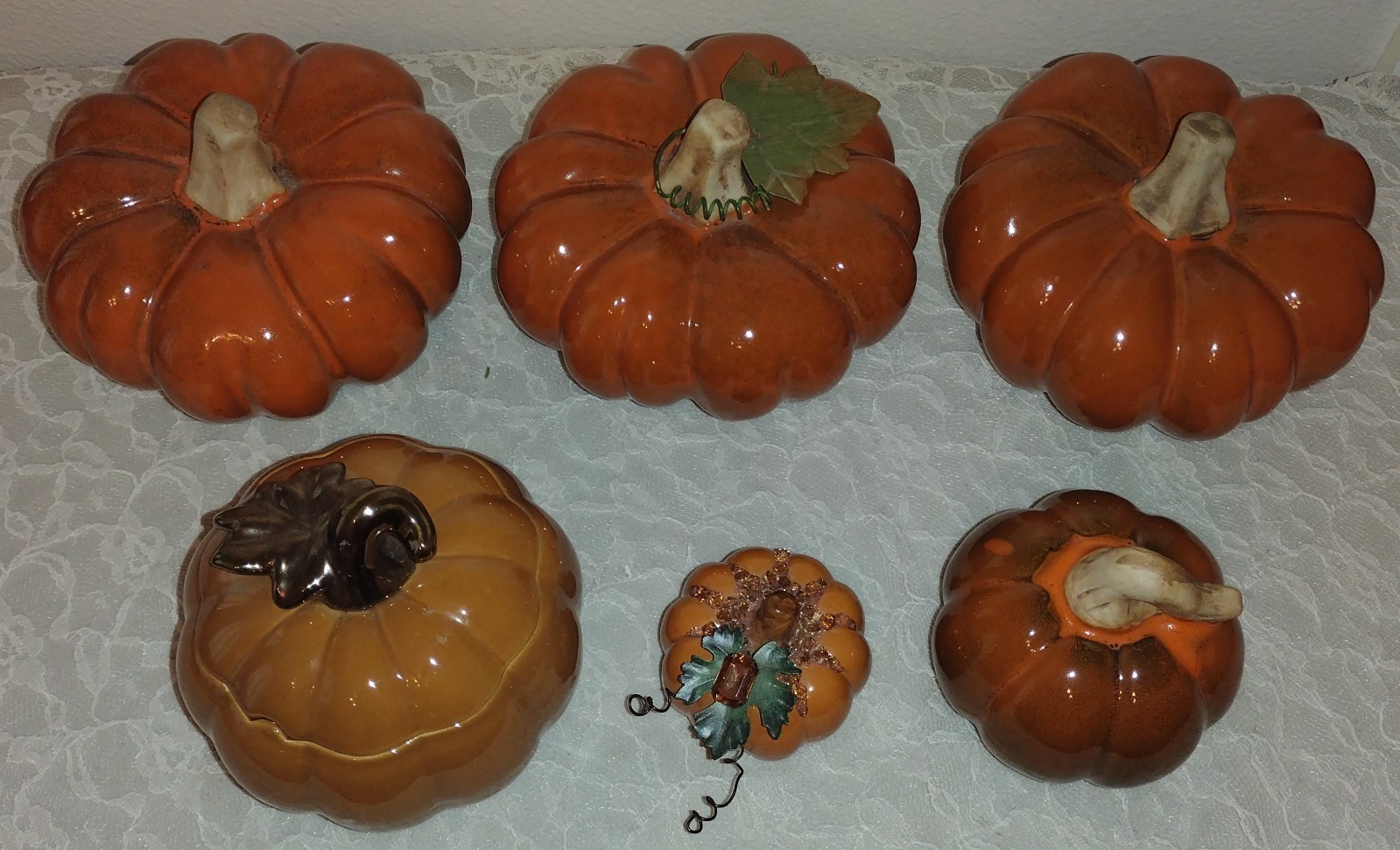 - Lidded Dish & Other Pumpkin 6pc Lot Ceramic Fall/Autumn Thanksgiving Table Decor