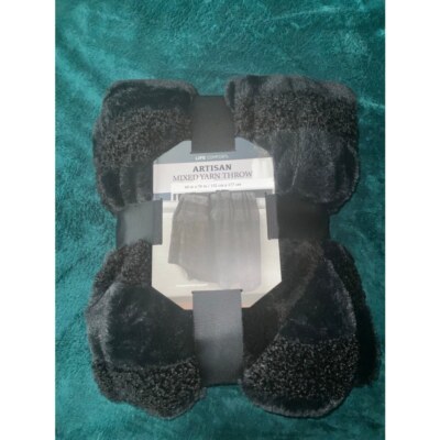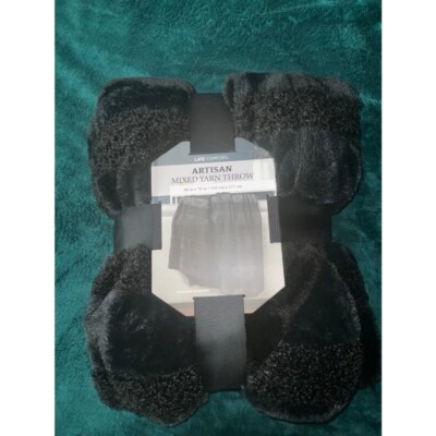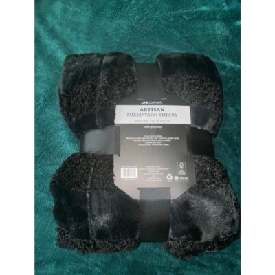 Life-Comfort Artisan Mixed Yarn Throw, 60 x 70 inches, Teddy Faux Fur Faux Fur (Black)