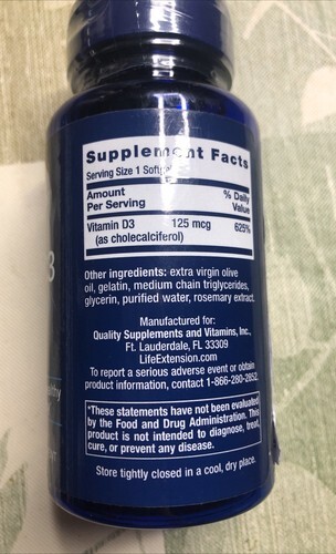 - Life Extension Vitamin D3 125 mcg 5000 IU 120 softgels 09/2026