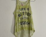 - Life Is Better On The Beach Knot Front Women’s Tank Top Yellow/Green Small (3-5)