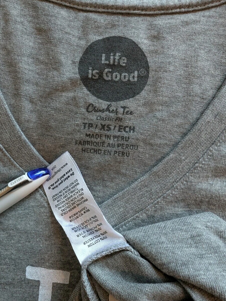 - Life Is Good Crusher Tee Gray Short Sleeve Women XS Valentine's Pride Graphic