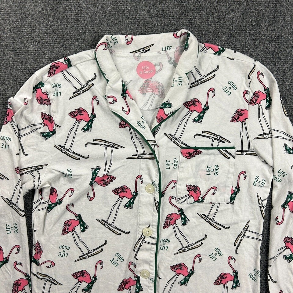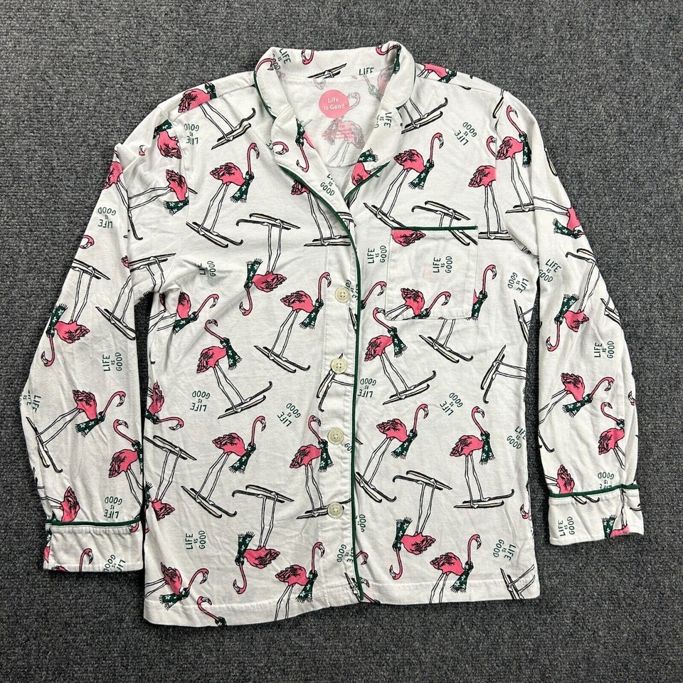 - Life is Good Sleep Shirt Womens Small Button Up Flamingos 100% Cotton Adults
