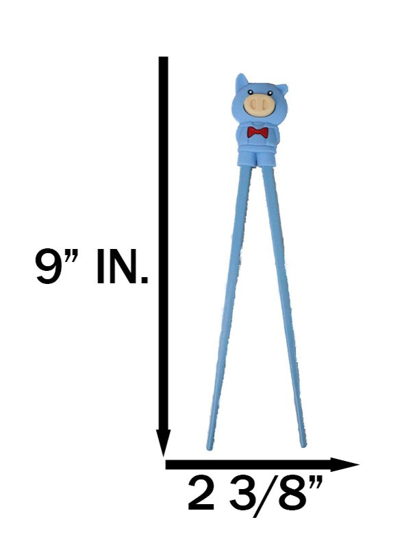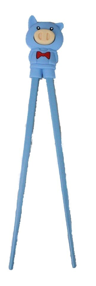- Light Blue Porky Pig Reusable Training Chopsticks Set With Silicone Helper
