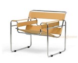 Light Brown Tan Camel Beige Faux Leather Strap Chromed Steel Tube Frame Chair