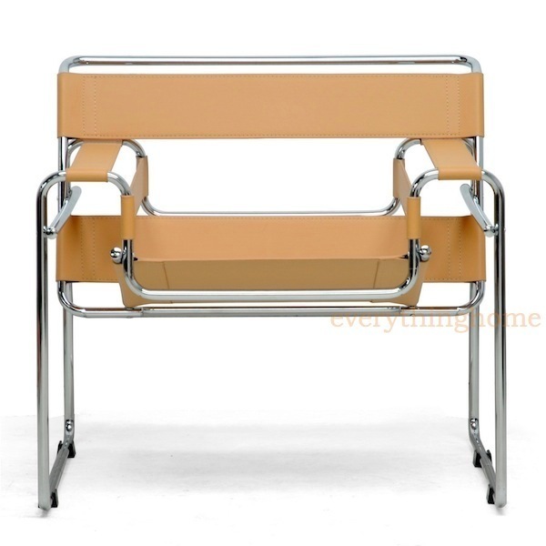 - Light Brown Tan Camel Beige Faux Leather Strap Chromed Steel Tube Frame Chair