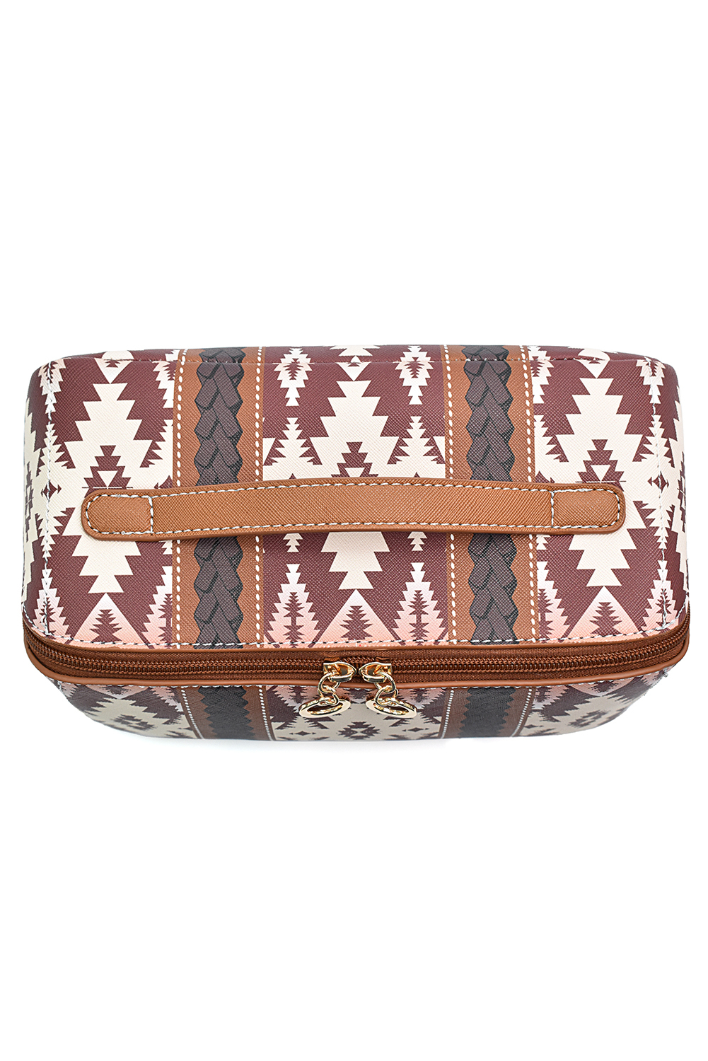 - Light French Beige Geometric Braided Print Makeup Bag with Handle